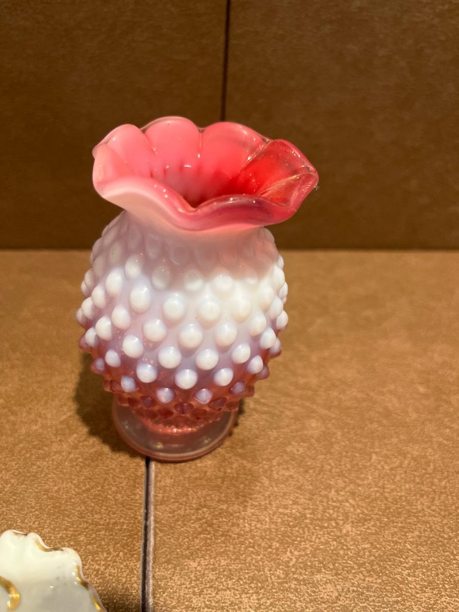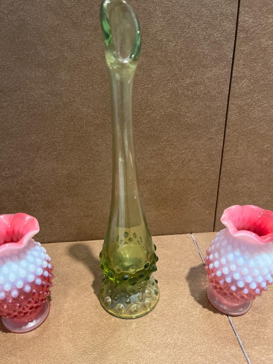 Green swung vase, 2 Fenton vases & Austrian plate