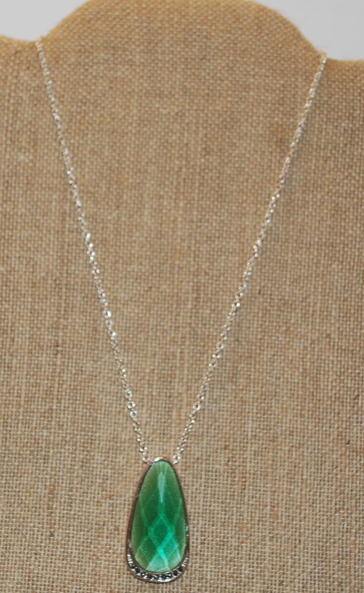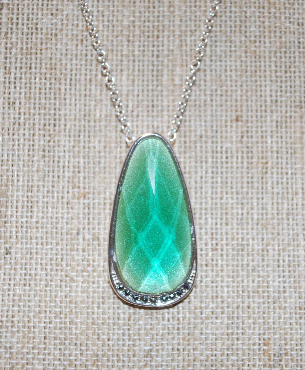 Green Synthetic Emerald-Style Stone 1½" Necklace with 8 Stone Accents 20 " L