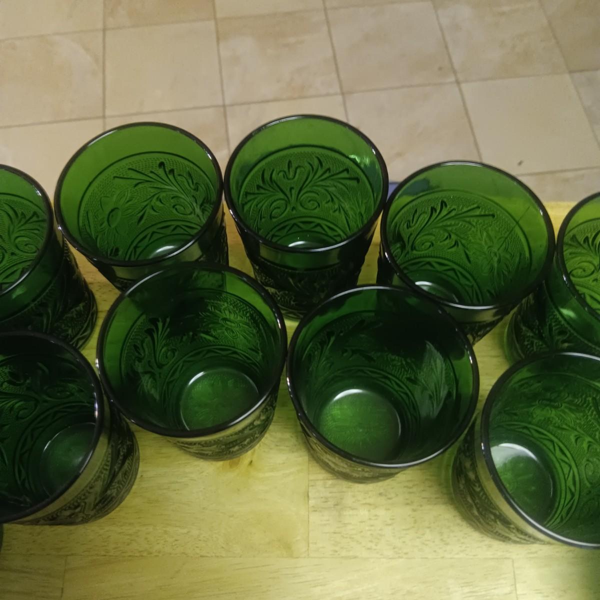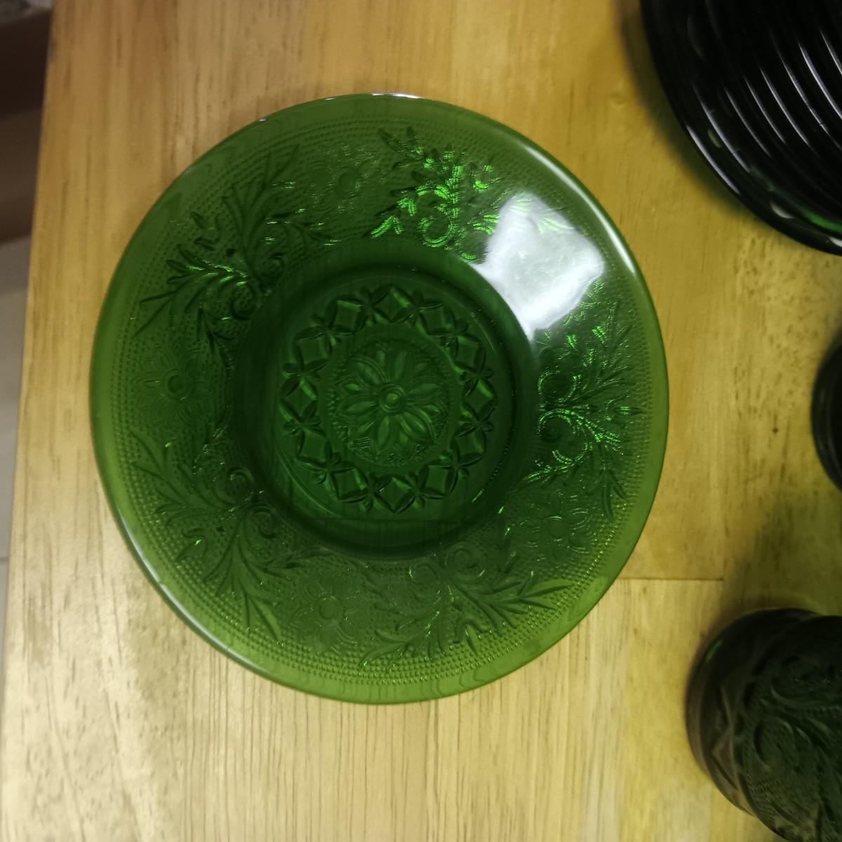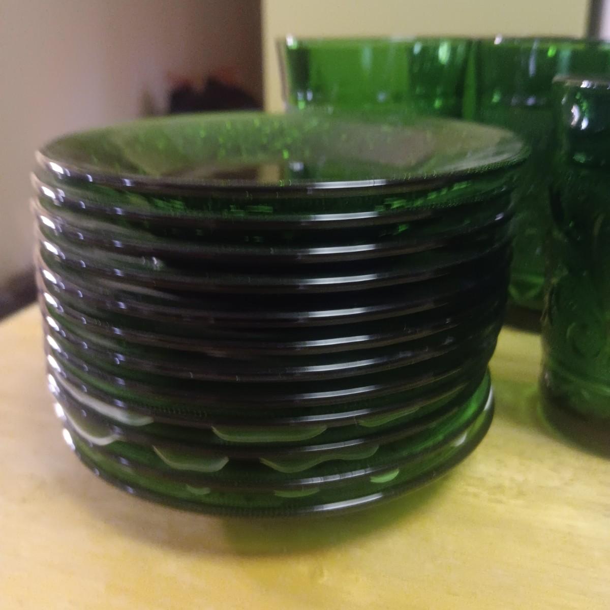 8 SMALL GLASSES, 12 LARGER GLASSES, 6 BOWLS AND 12 SMALL PLATES