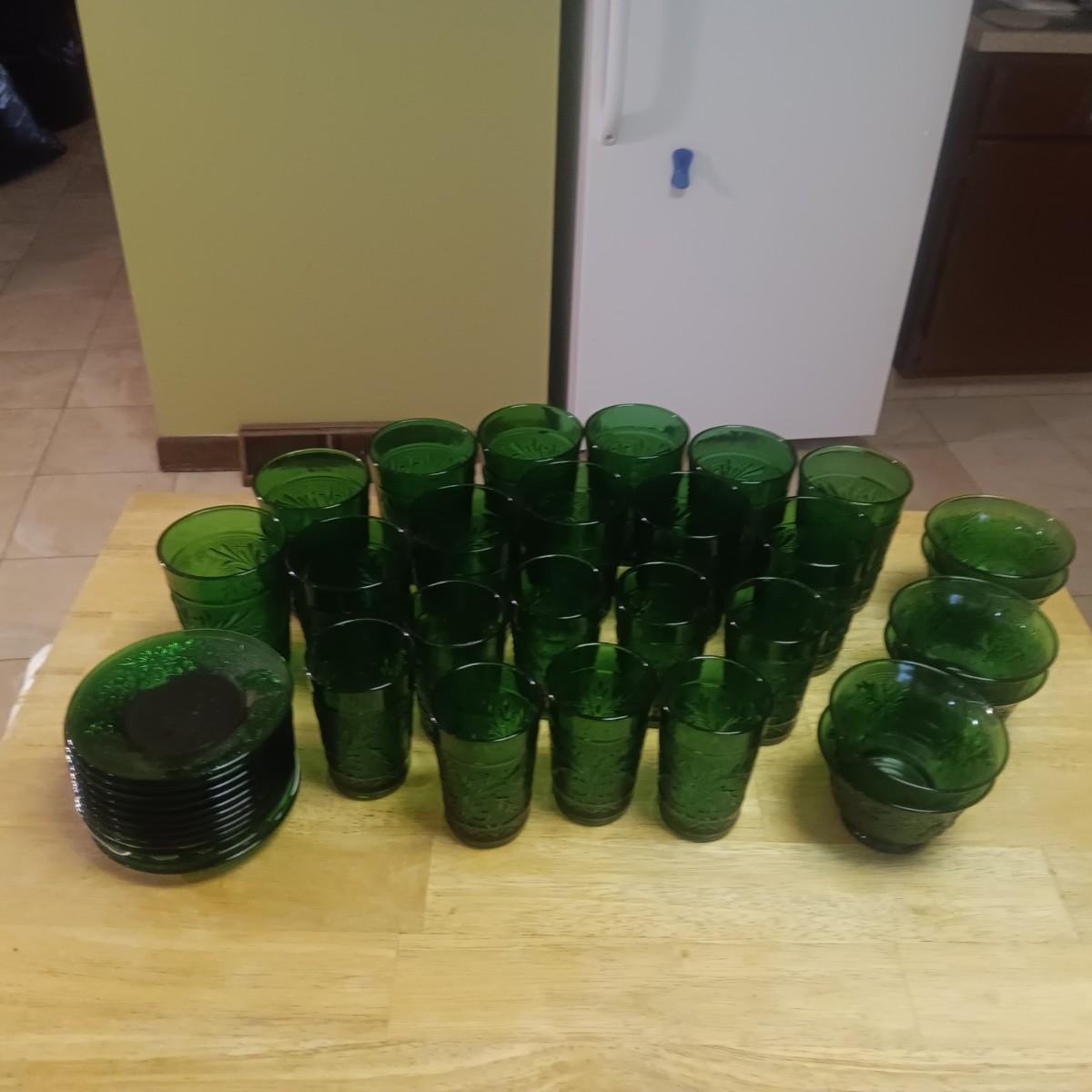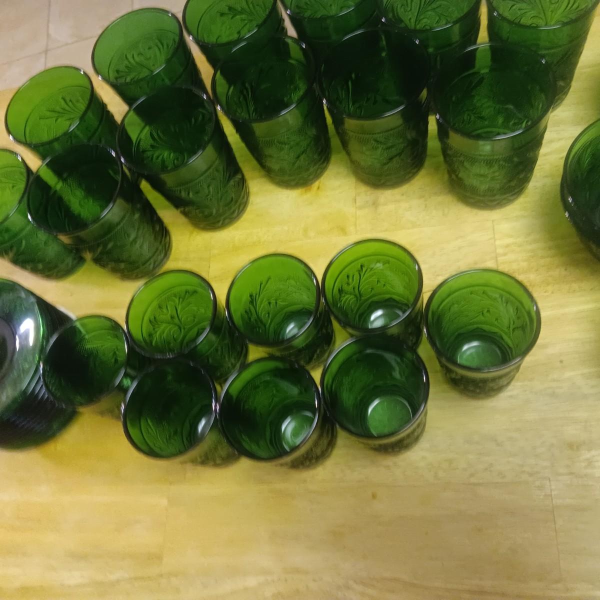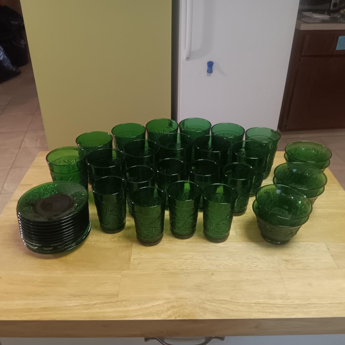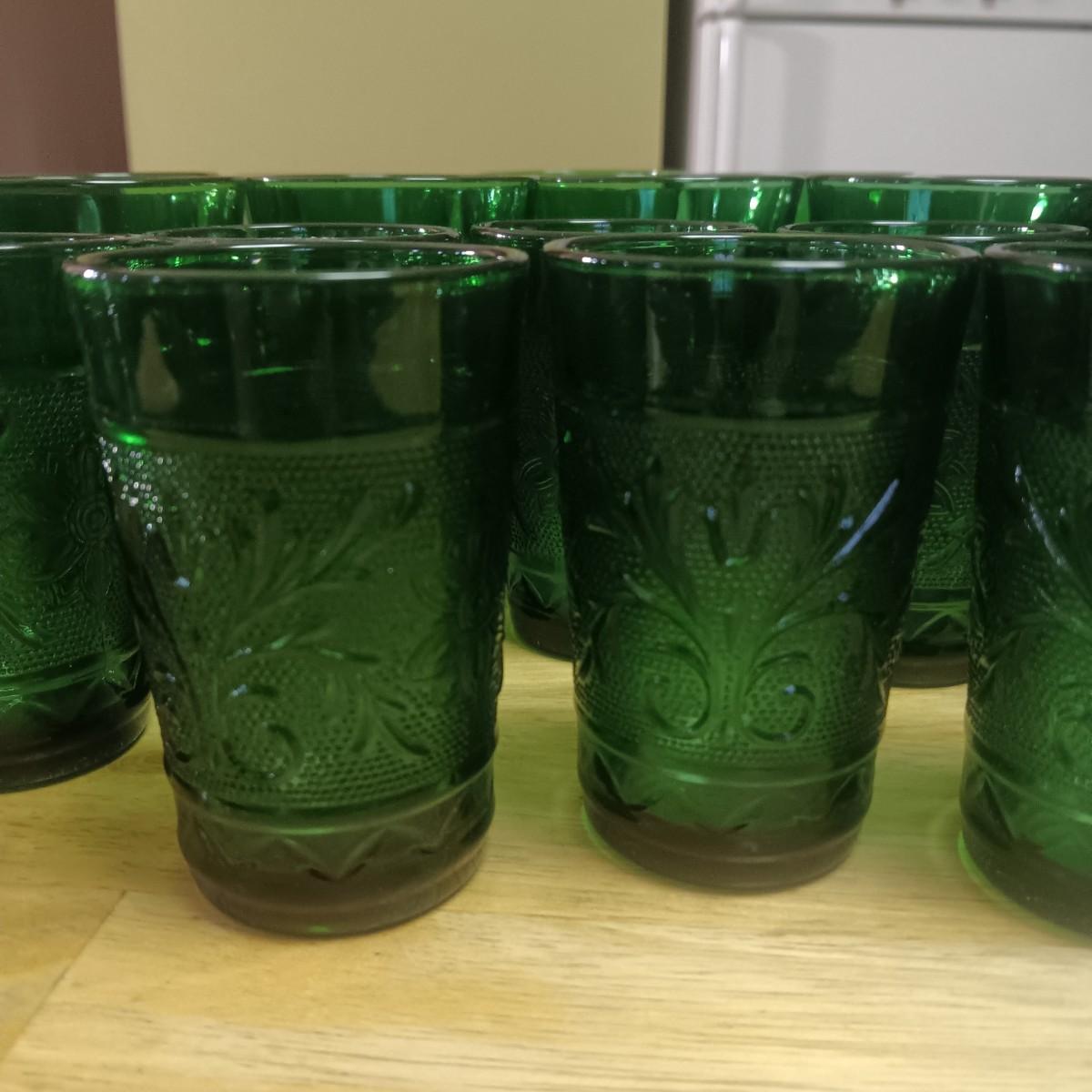 8 SMALL GLASSES, 12 LARGER GLASSES, 6 BOWLS AND 12 SMALL PLATES