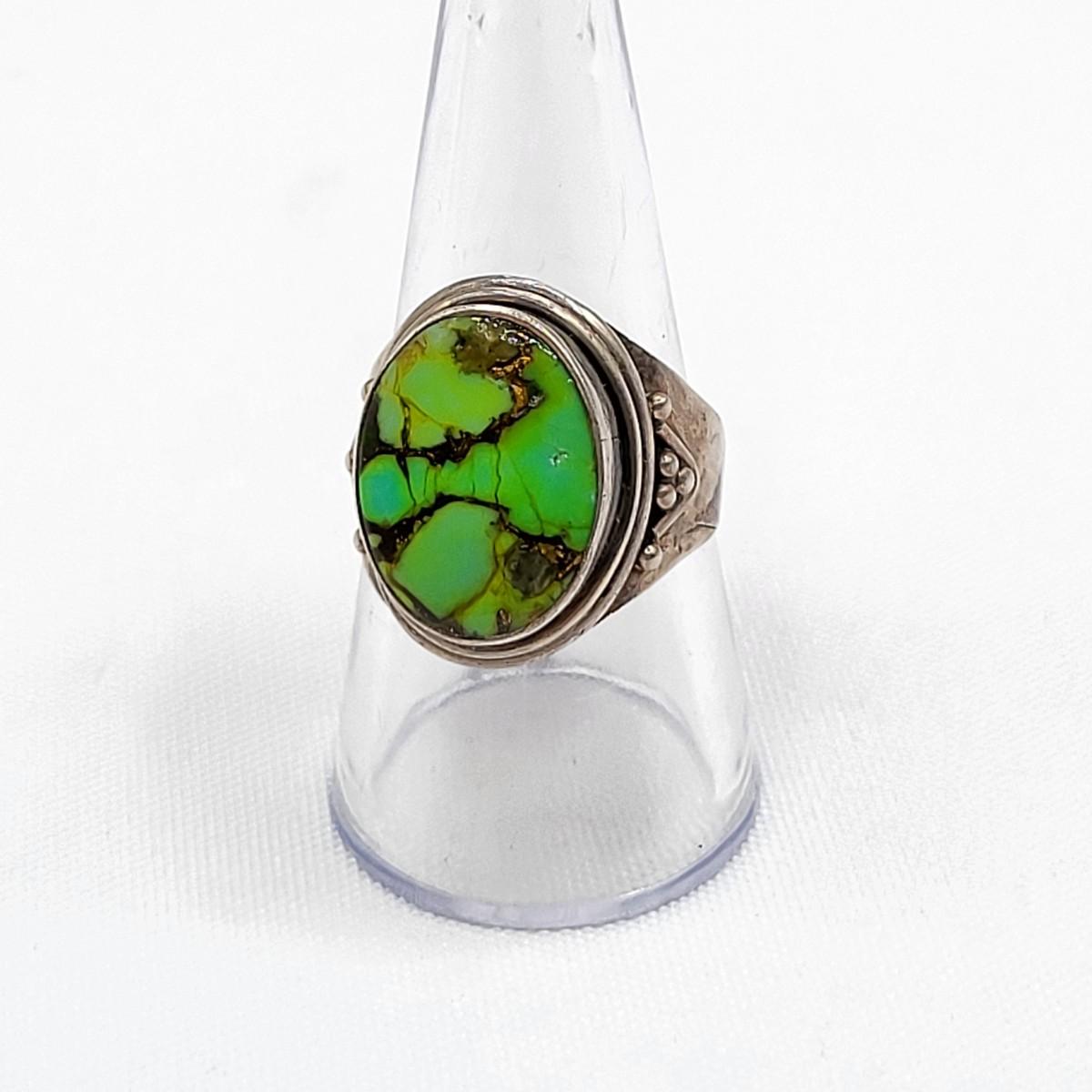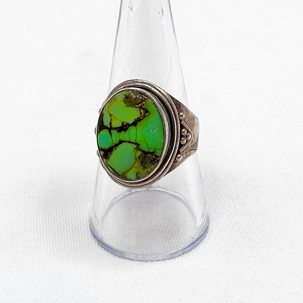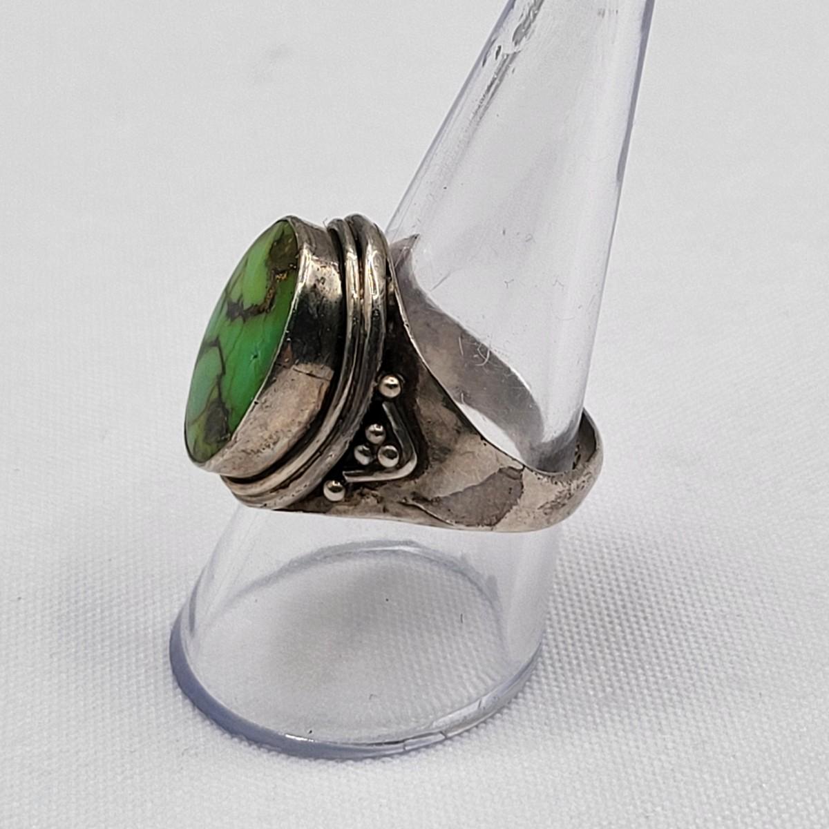 Green Turquoise ring in 925 silver setting, size 9. Face of the ring is .5" x .75". Man or woman ring.
