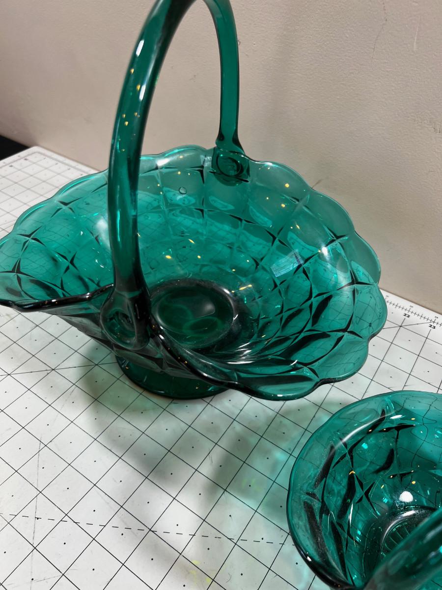 Green Turquoise Block Pattern Platter Bride Basket