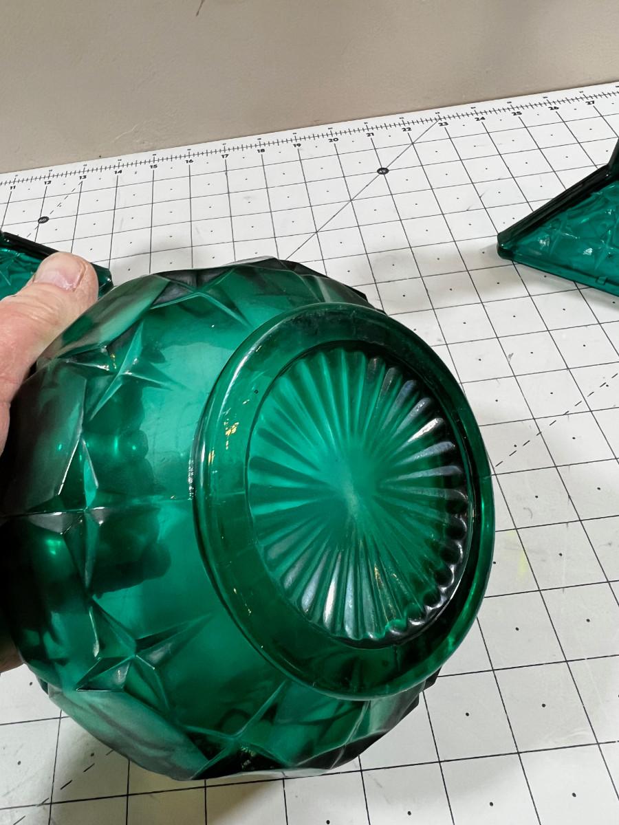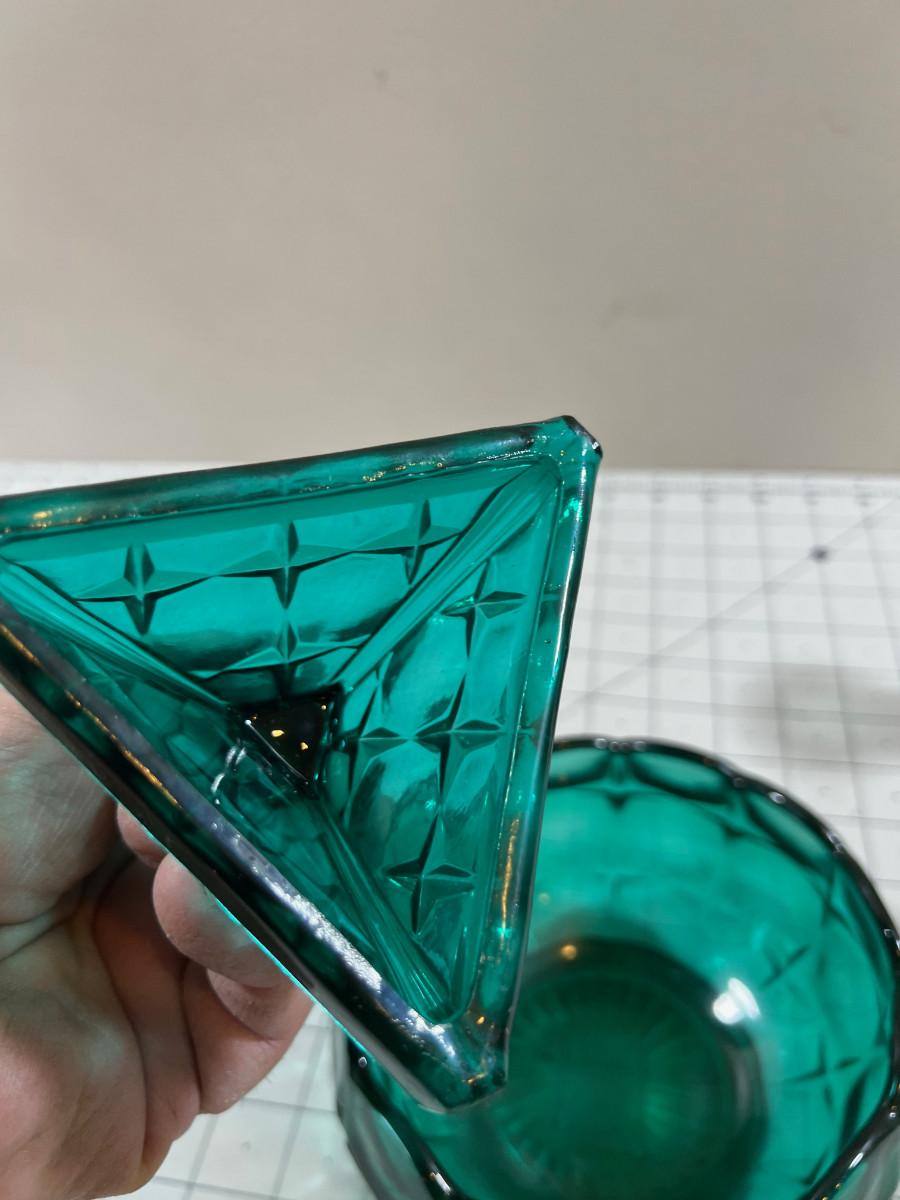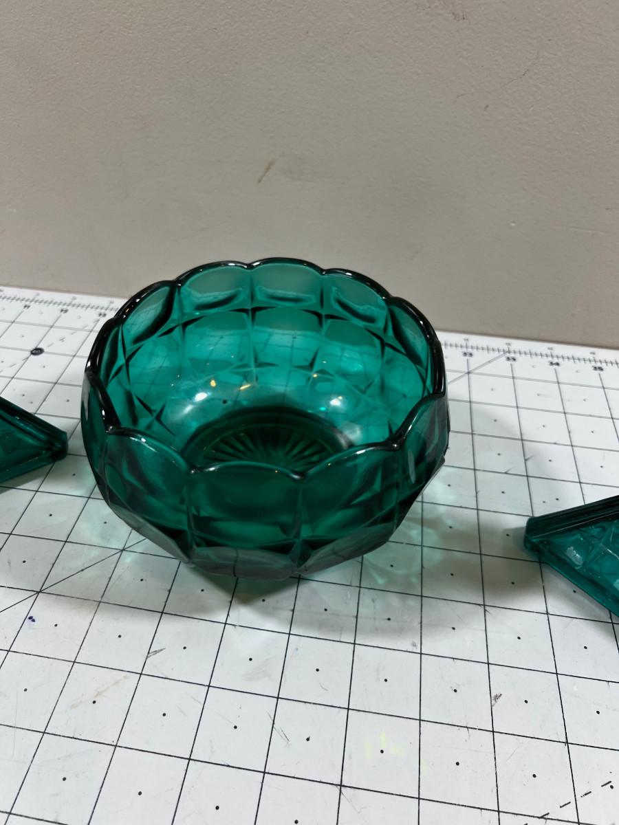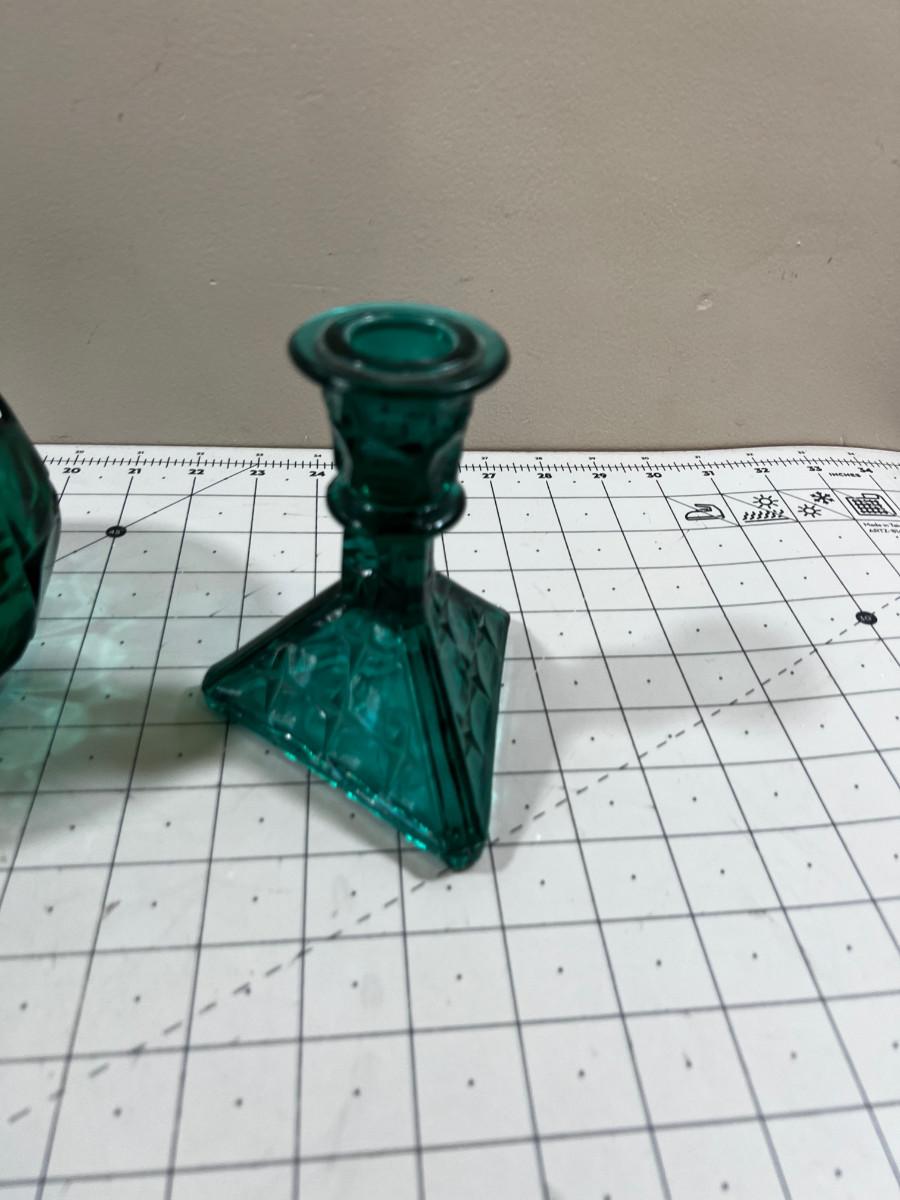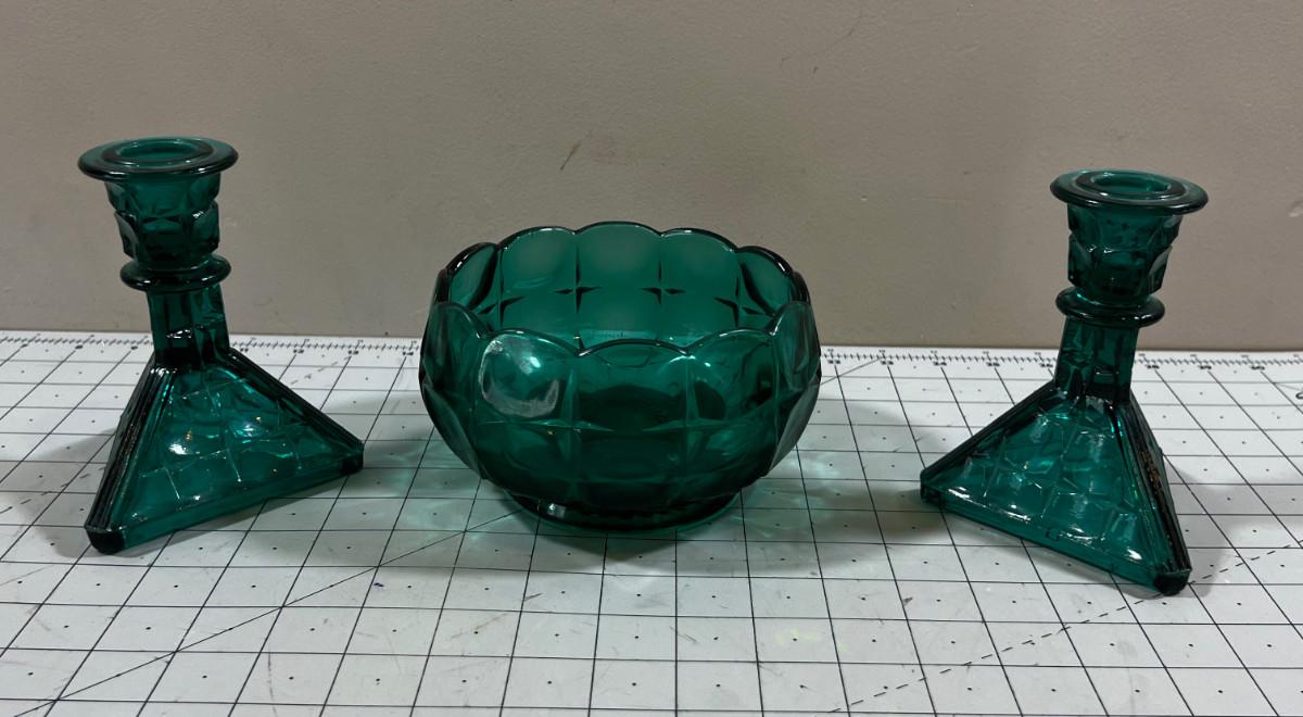 Green Turquoise Block Pattern Platter Pair of Candle Sticks and Bowl