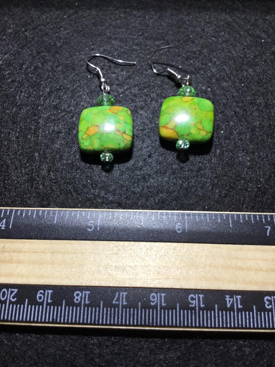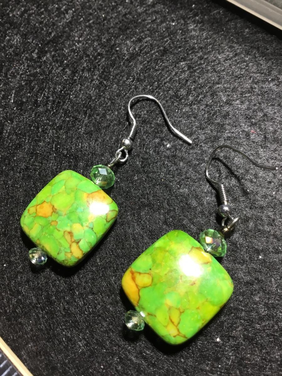 Green turquoise type howlite type stone fashion earrings