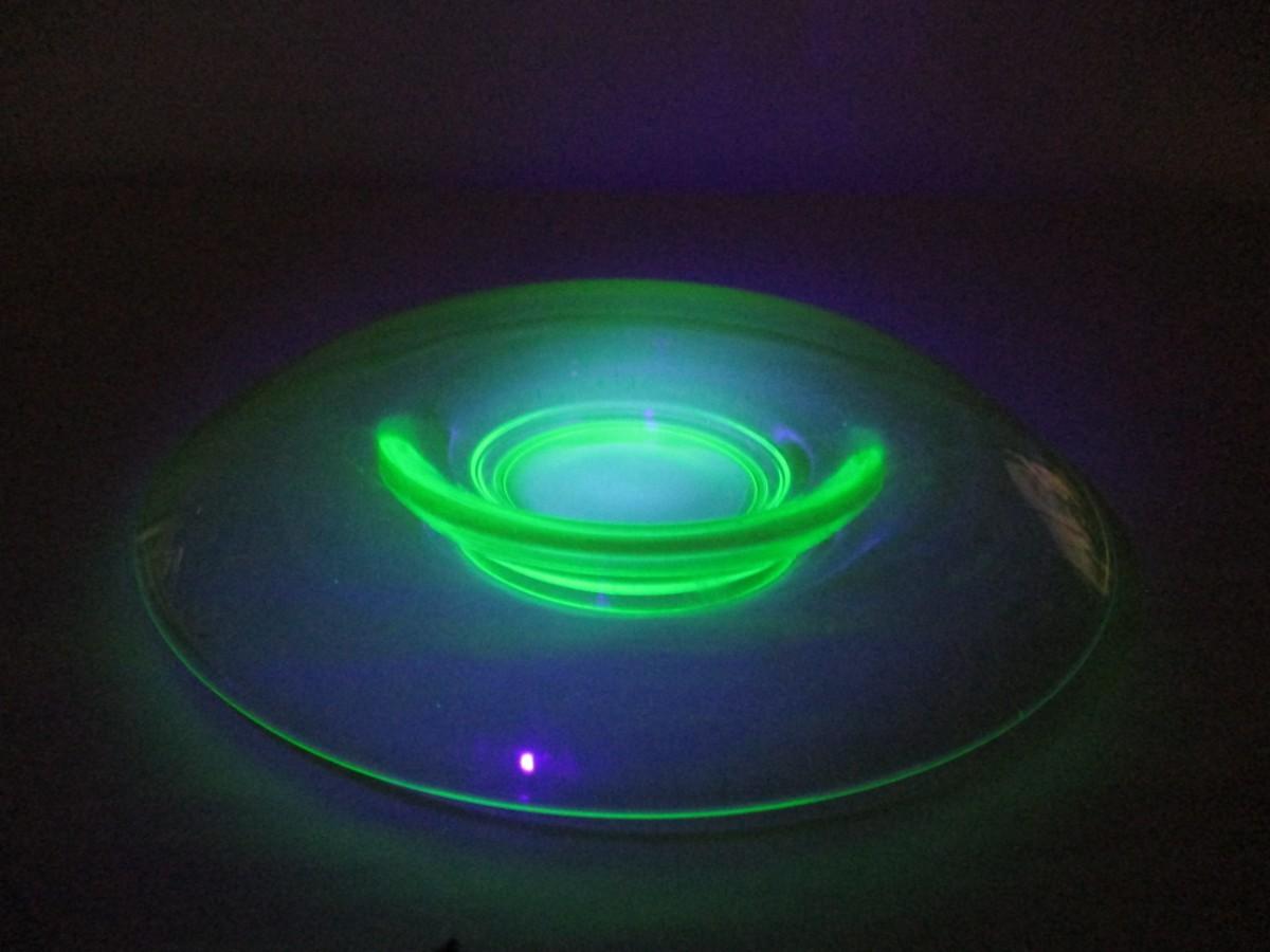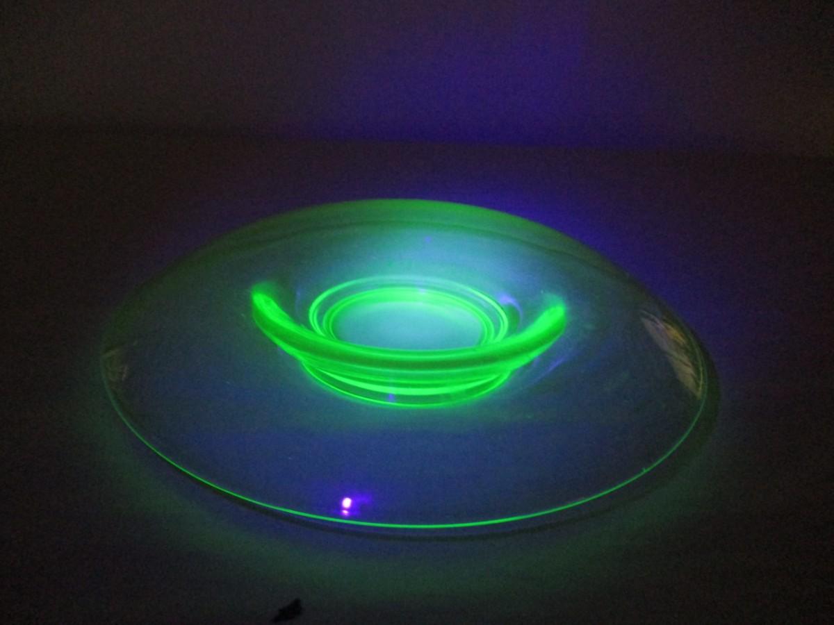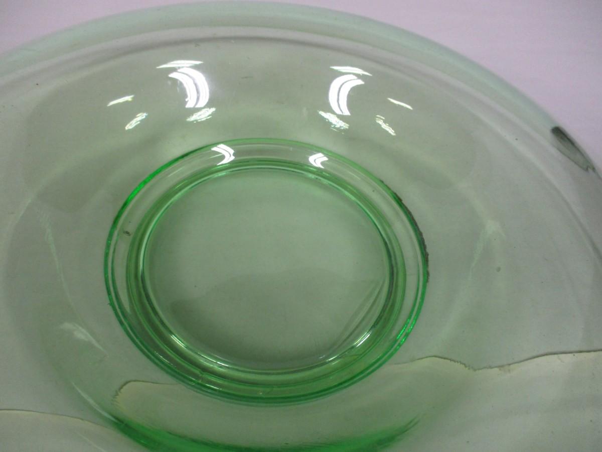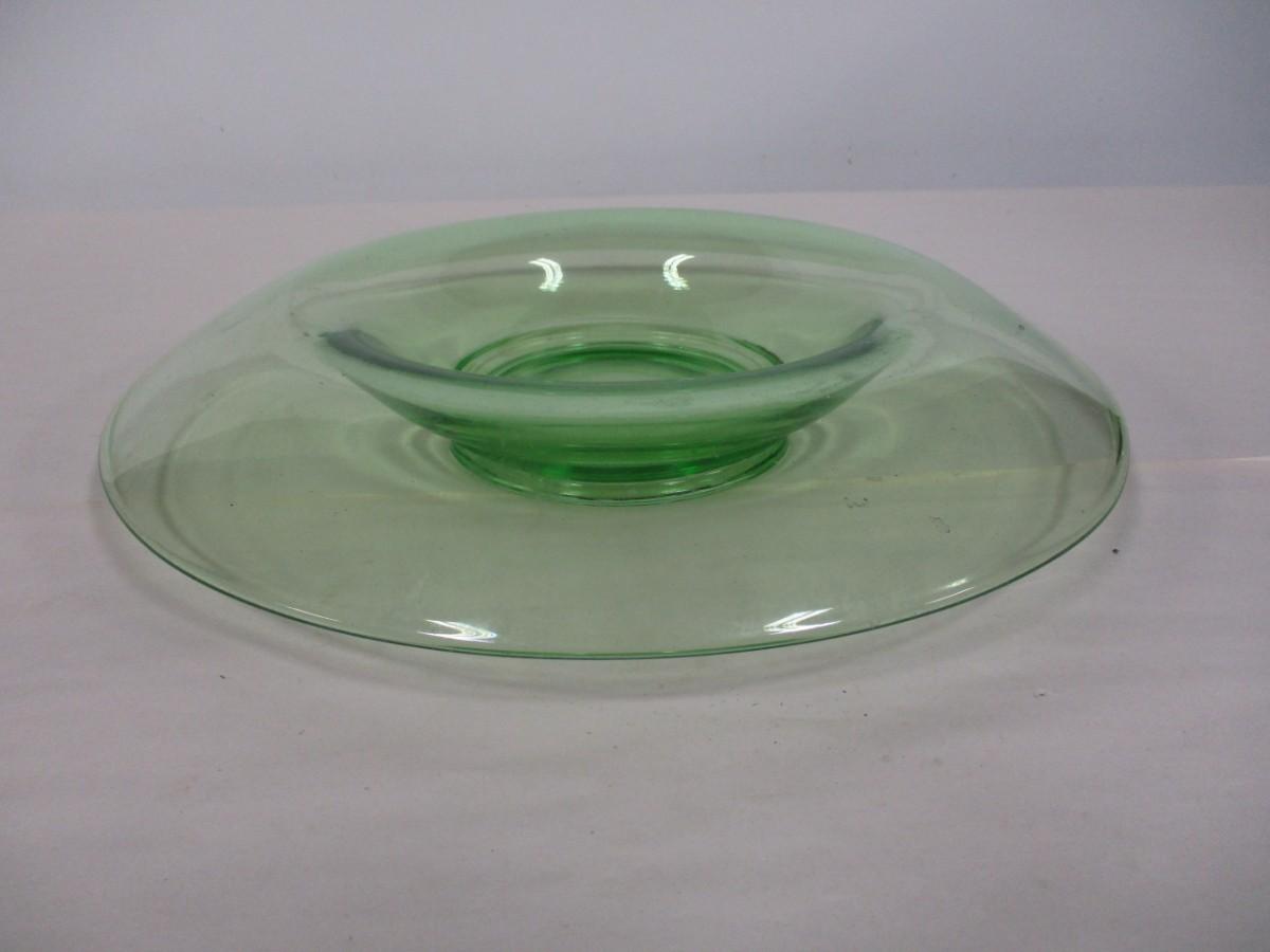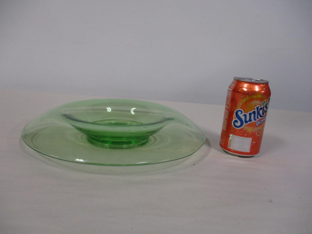 Green Uranium Depression Glass Rolled Edge Center Console Bowl