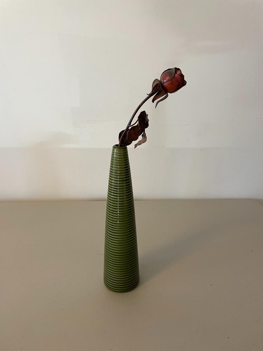 Green Vase with Metal Rose