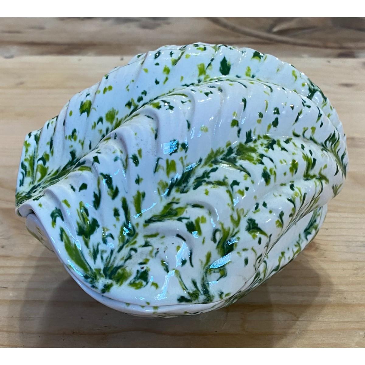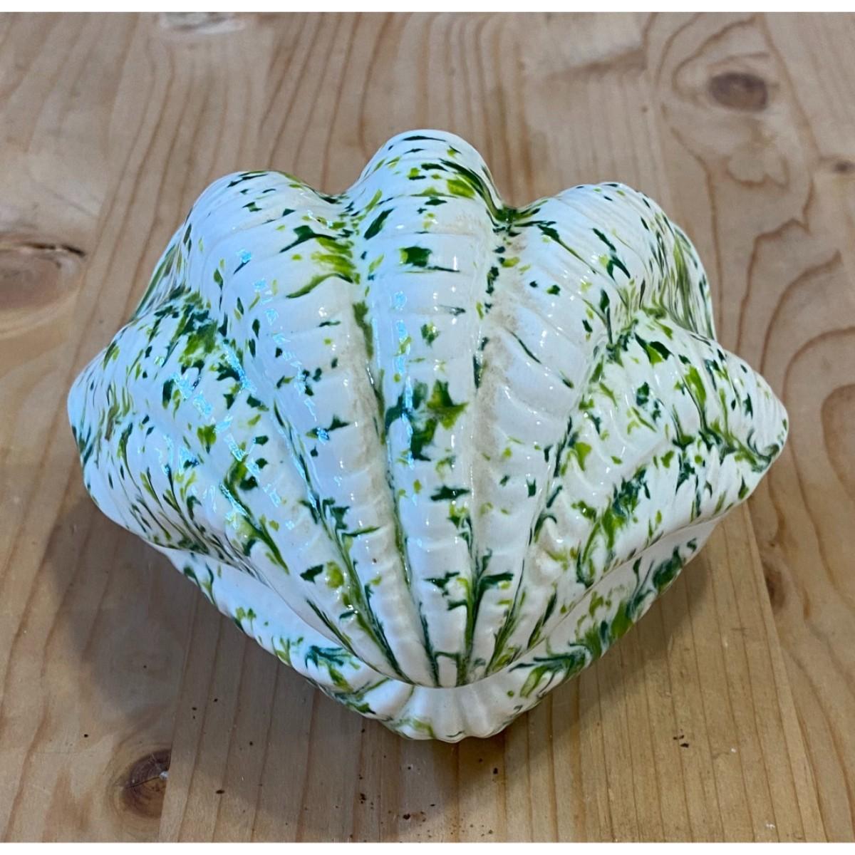 Green & White Ceramic Clam Shell Trinket / Candy / Soap / Nuts Dish Ocean Sea