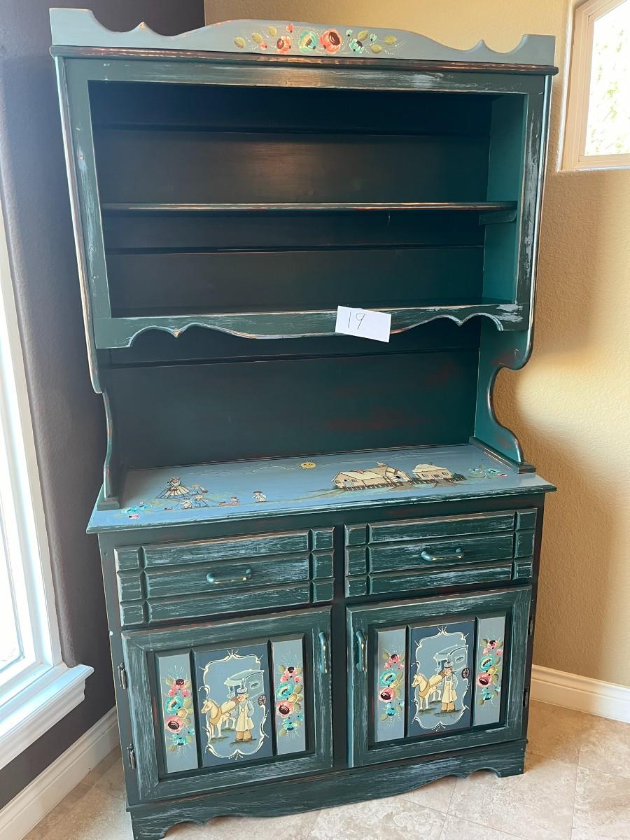 Green Wood Folk Art Buffet Cabinet