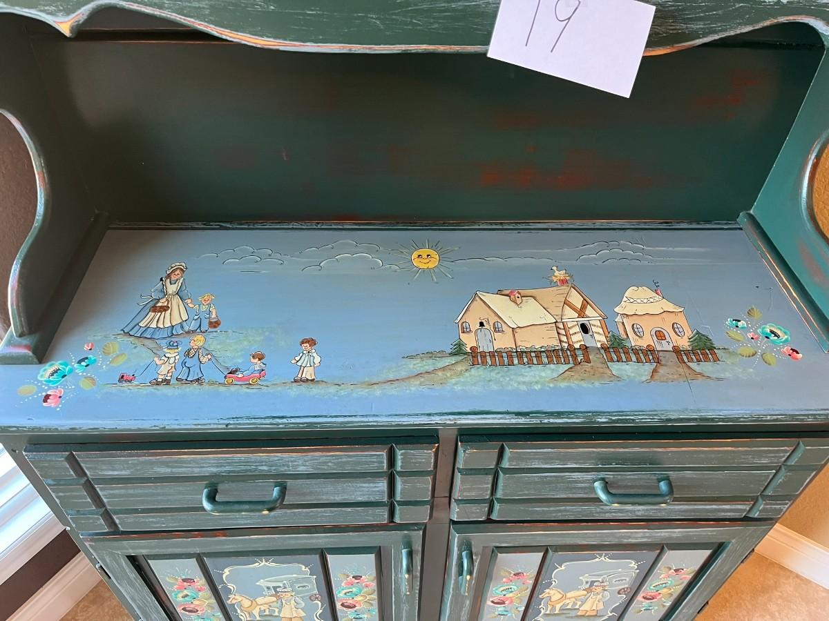 Folk Art Painted Buffet Cabinet.
