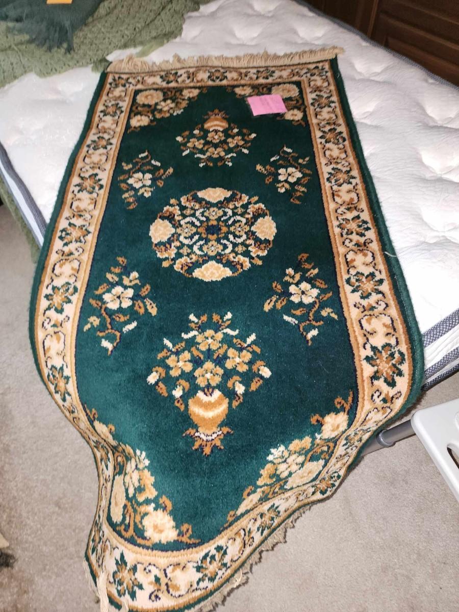 Green wool rug 24 inches by 52 inches