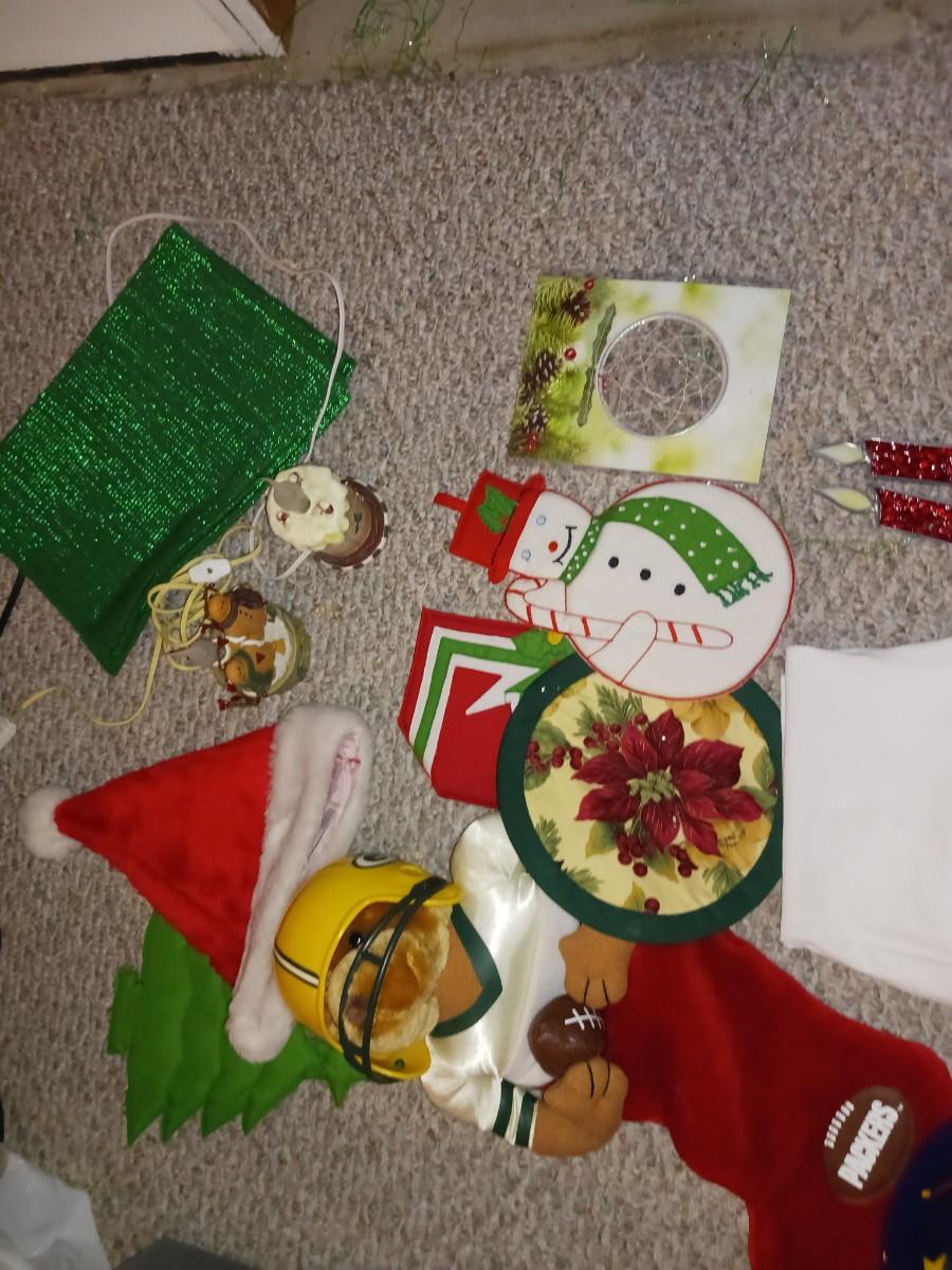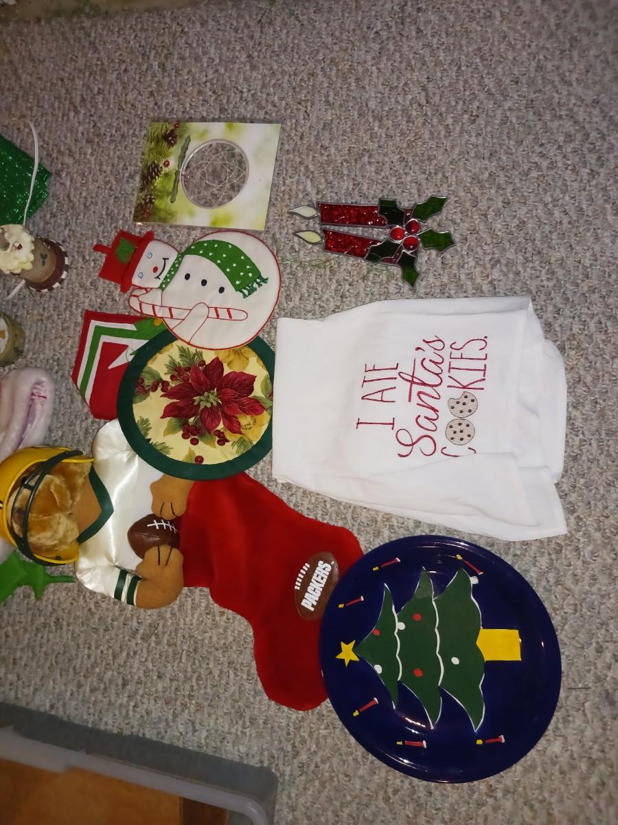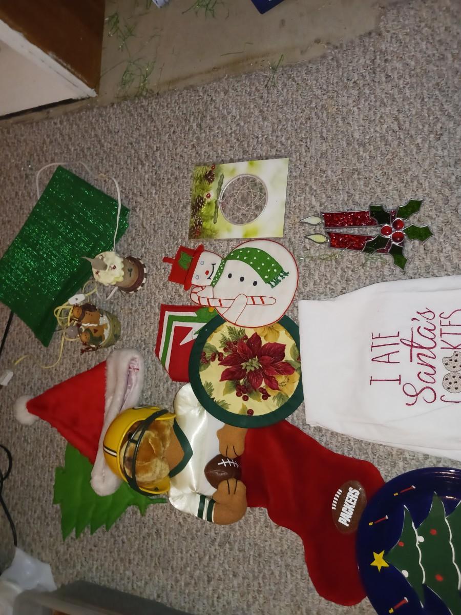 GREENBAY PACKERS STOCKING, PLACE MATS, TABLE SETTINGS, CHRISTMAS DECOR