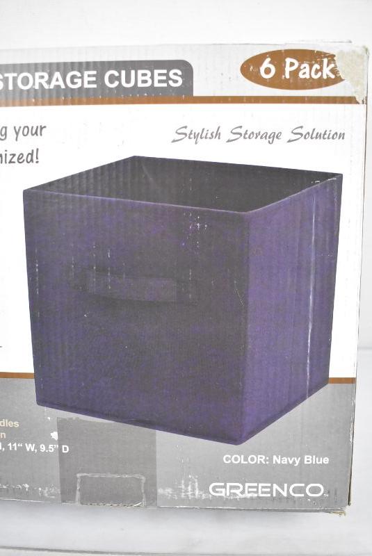Greenco Foldable Fabric Storage Cubes, 6 Pack, Navy Blue - New
