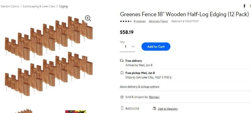 Greenes Fence 18" Wooden Half-Log Edging (12 Pack) - New, $59 @ Walmart