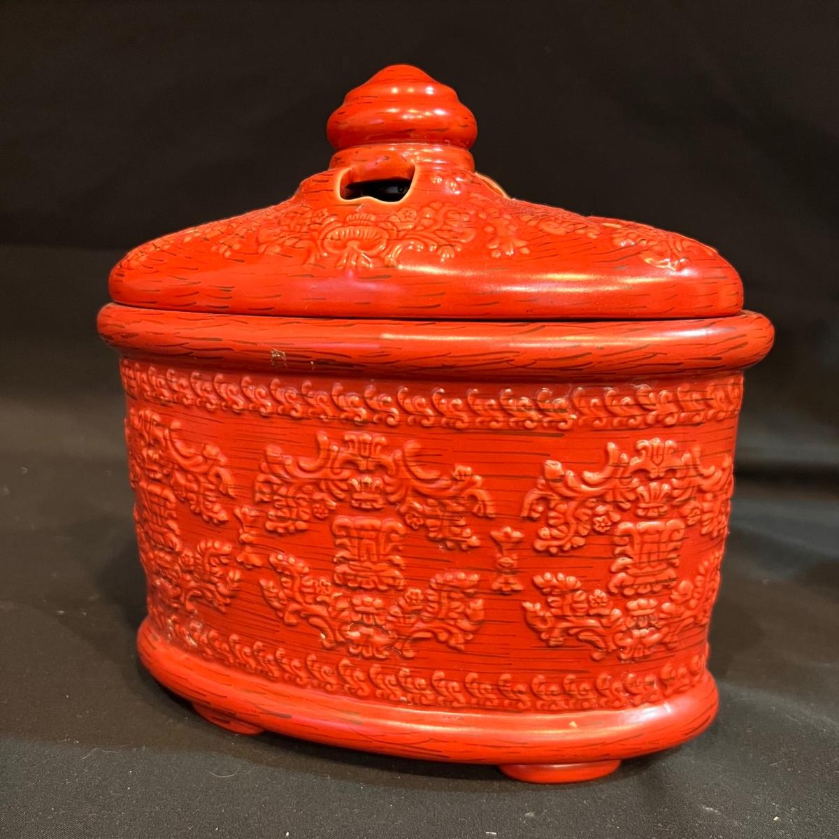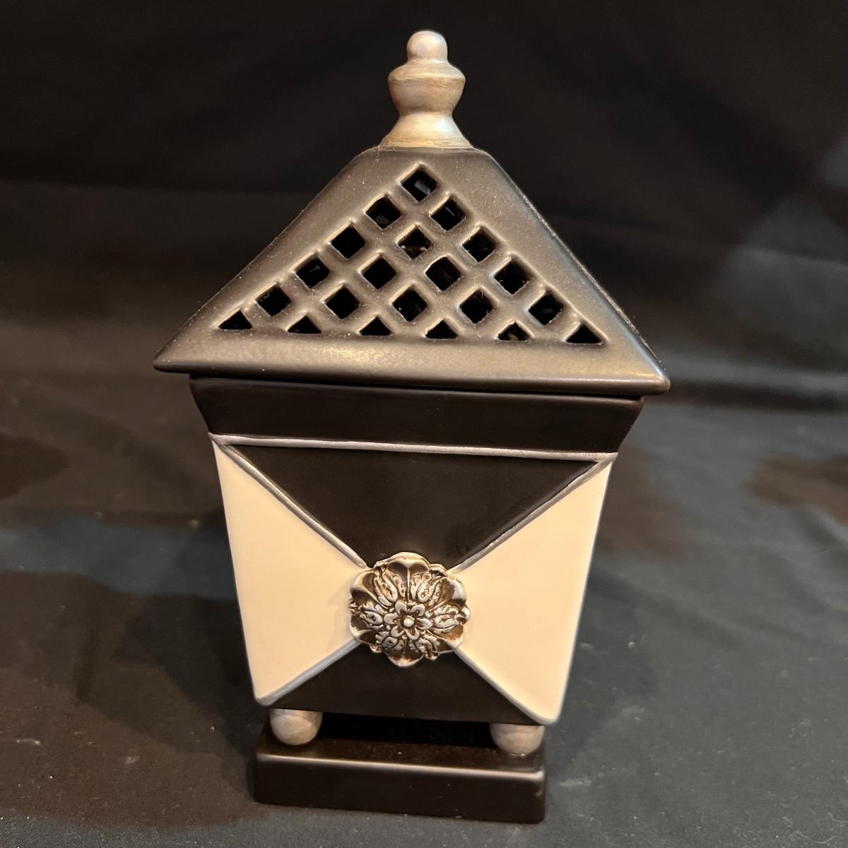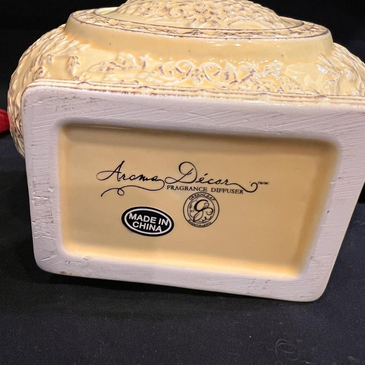 Three ceramic fragrance lamps. The red lamp has a wick, the others do not.
