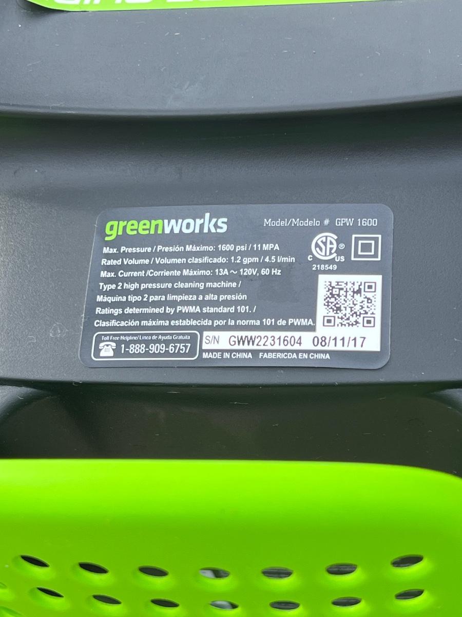 GREENWORKS ~ 1600PSI Electric Pressure Washer