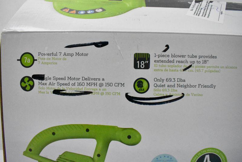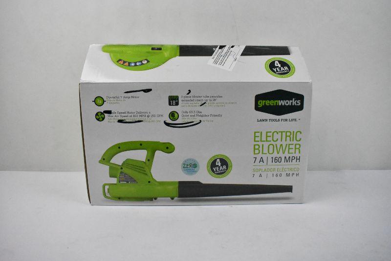 Greenworks Electric Blower, 7 Amp, 160 MPH - Tested, Works