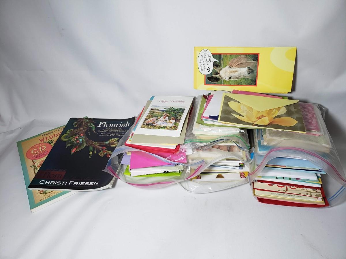 Large greeting card variety and 2 craft books