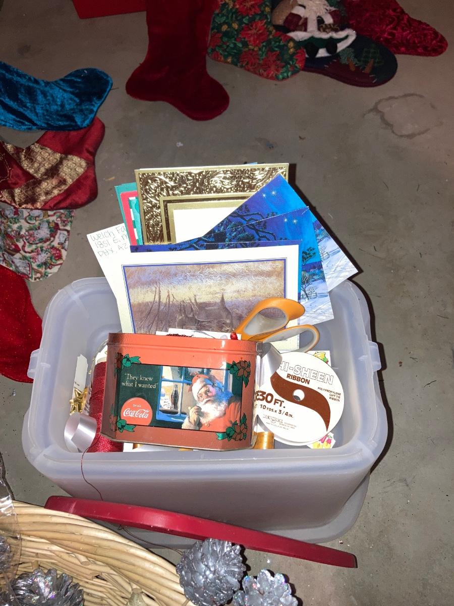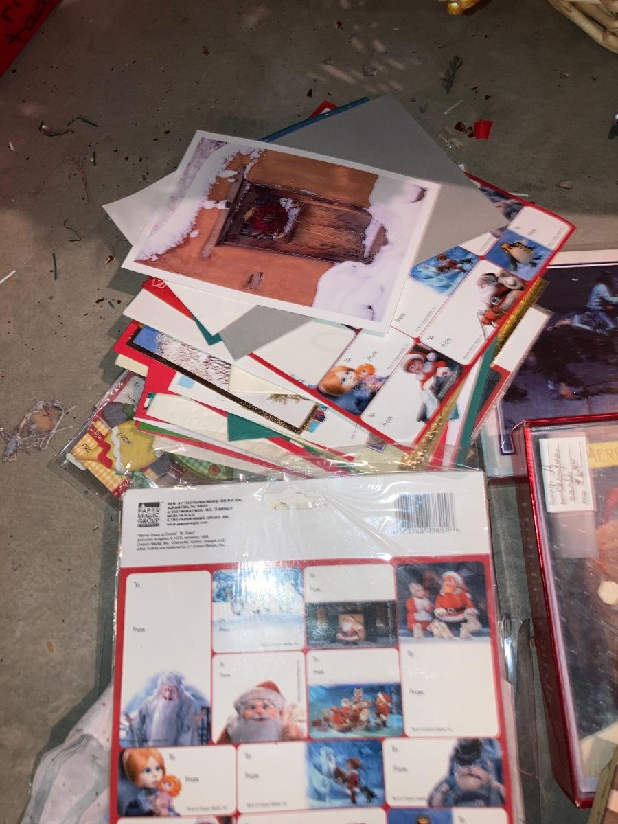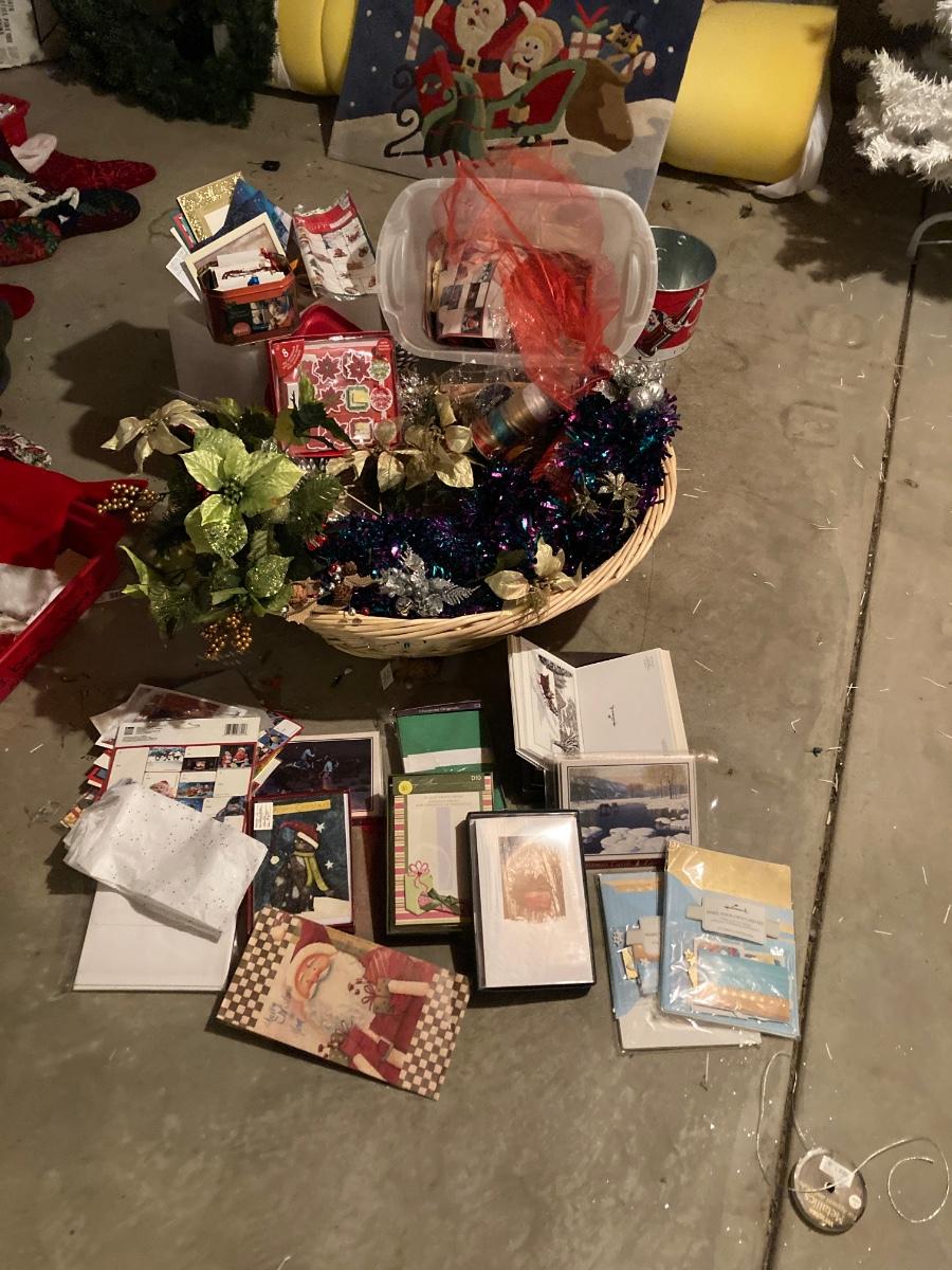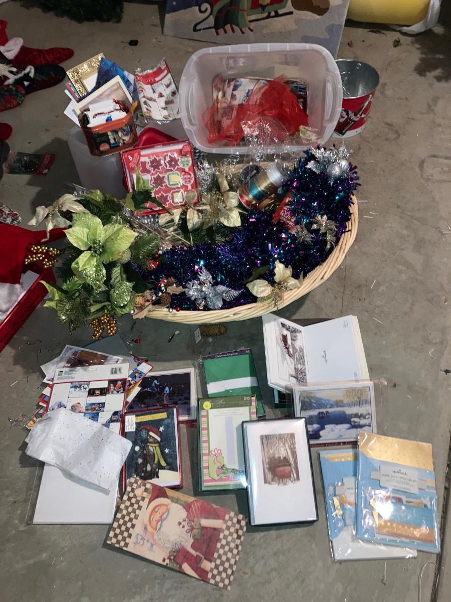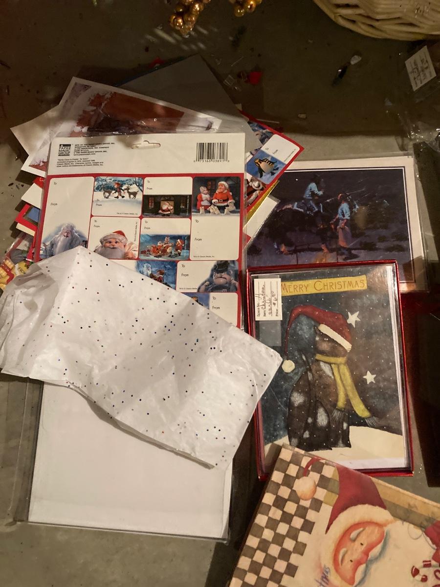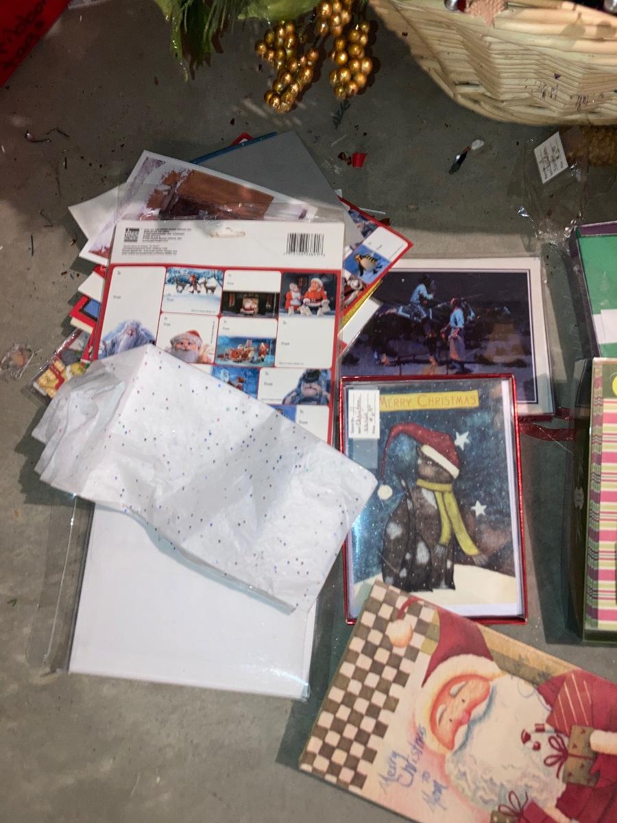 GREETING CARDS GALORE WRAPPING TOTE WITH A BUNCH OF TRIMMINGS FOR THE 🍒 TREE