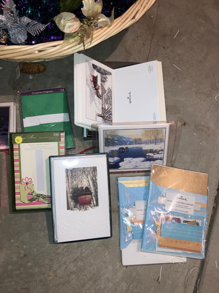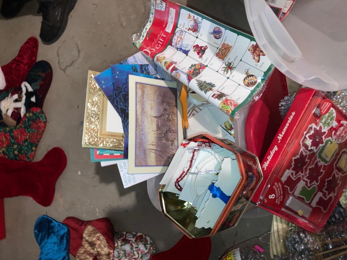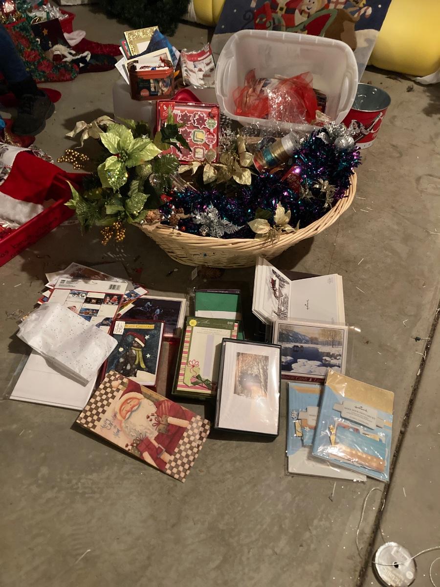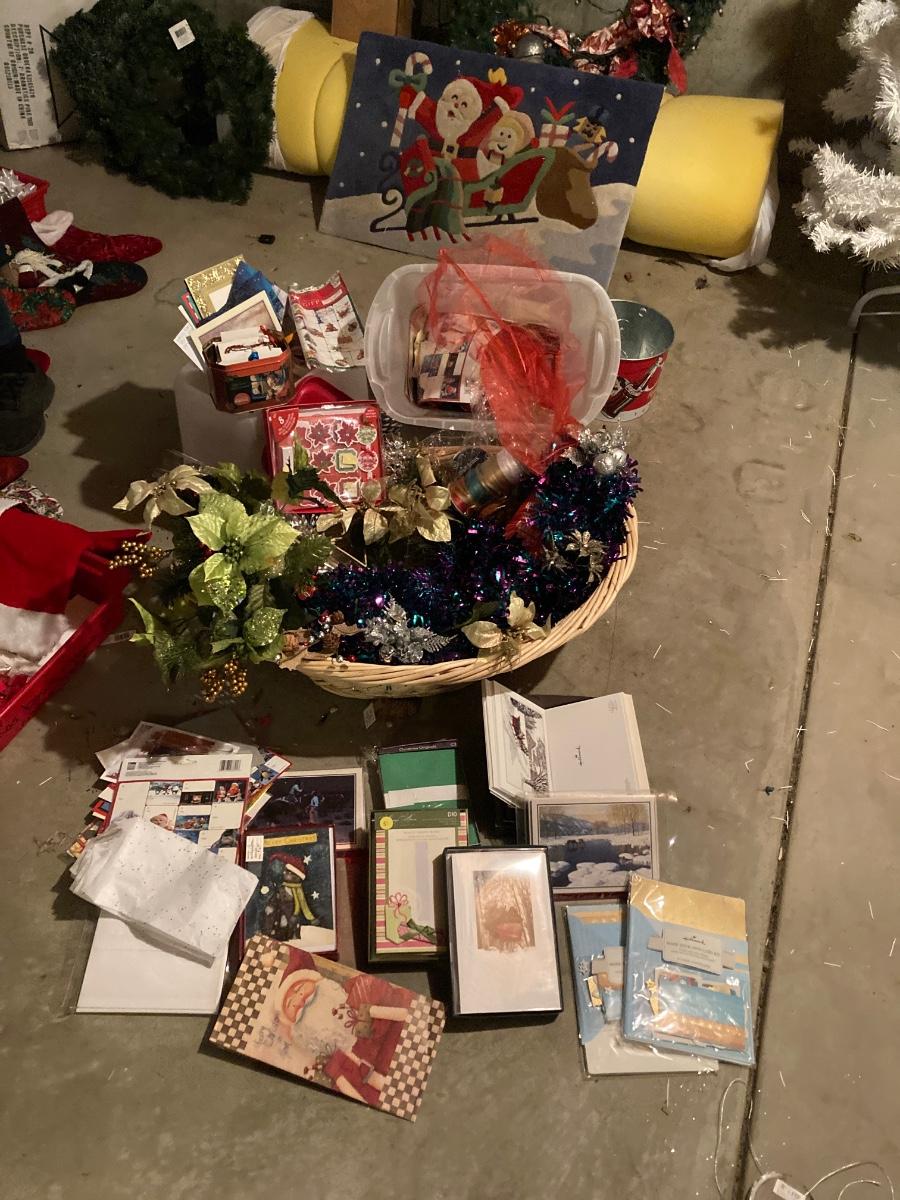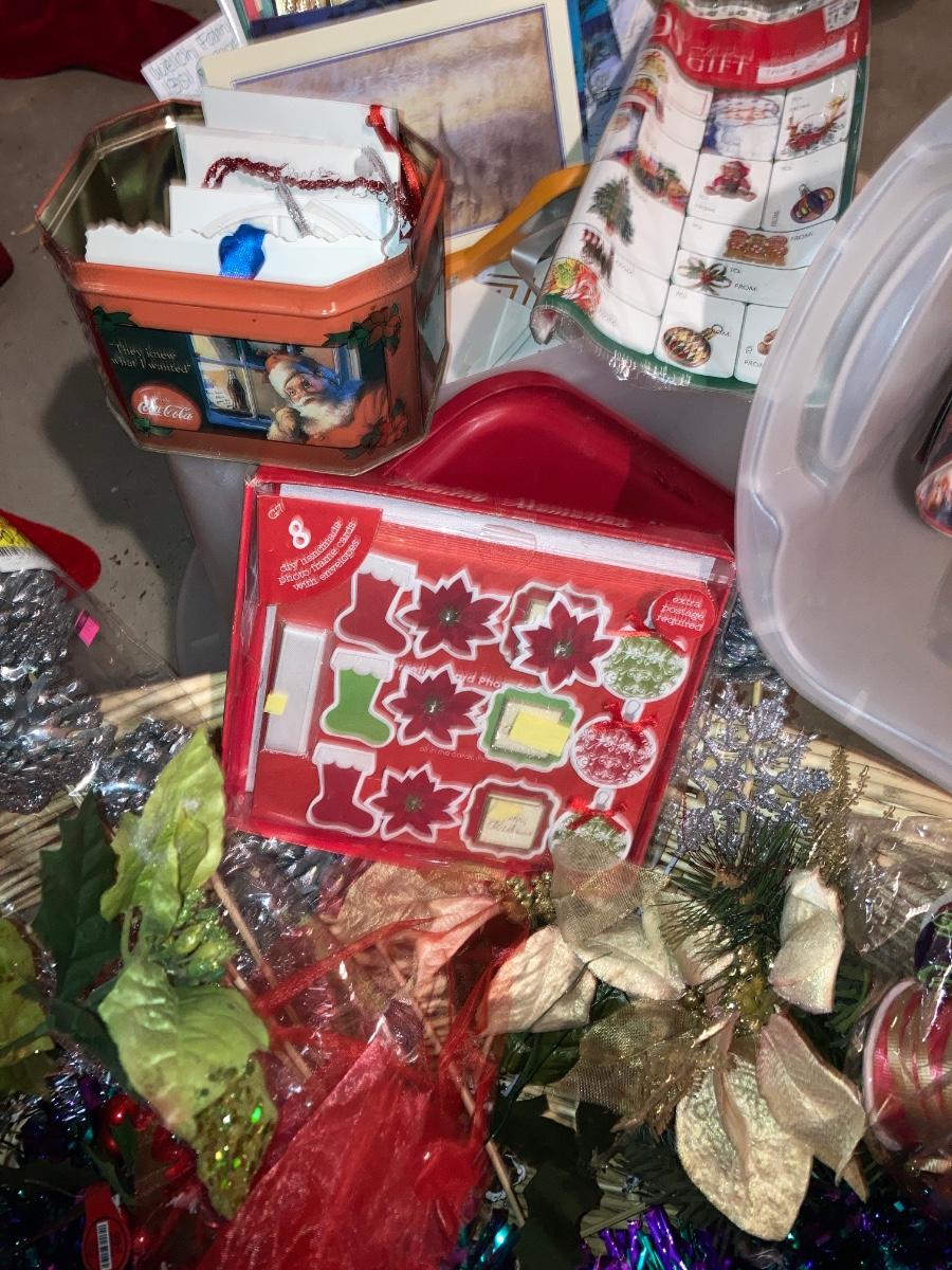 GREETING CARDS GALORE WRAPPING TOTE WITH A BUNCH OF TRIMMINGS FOR THE 🍒 TREE