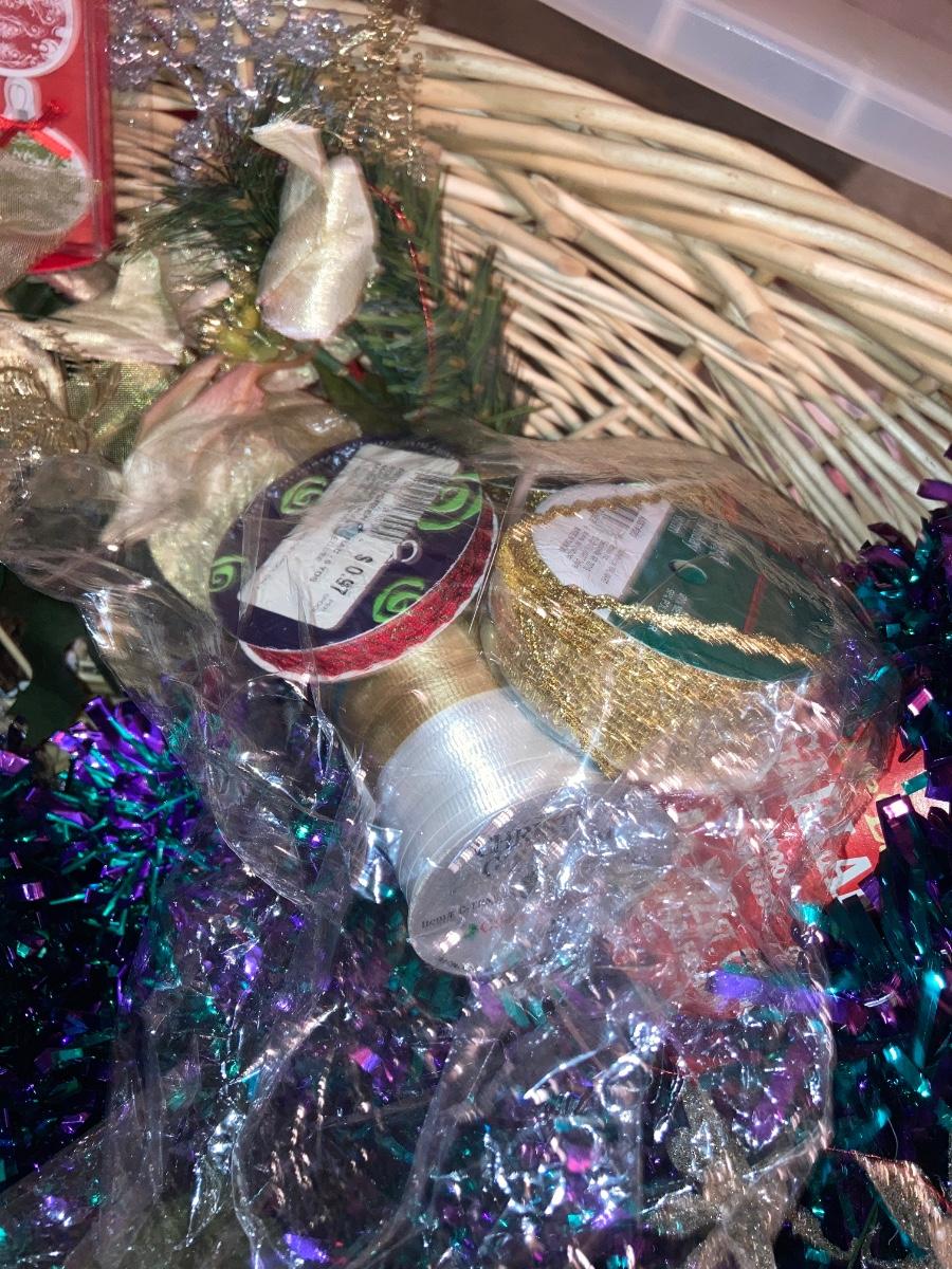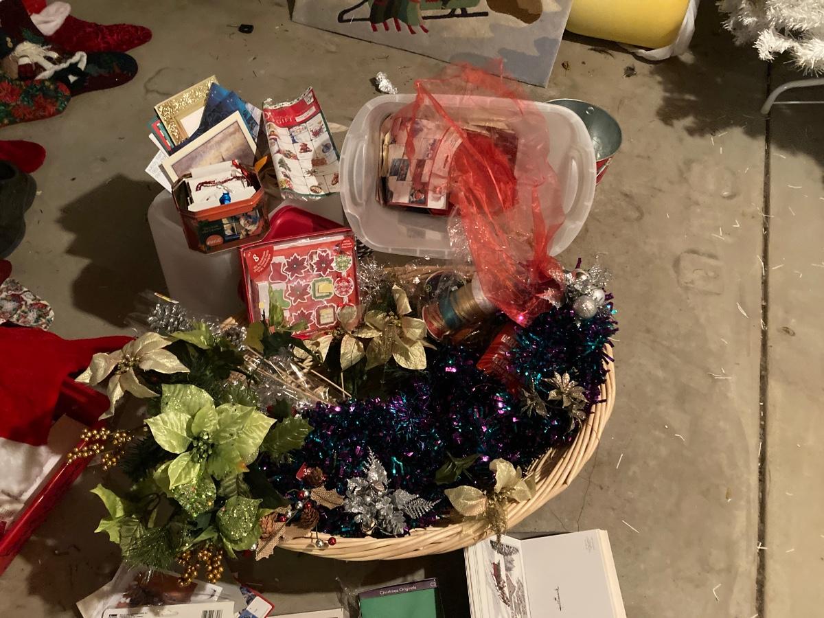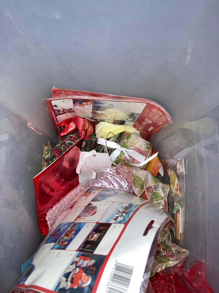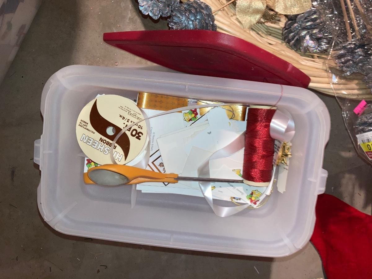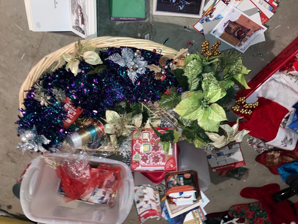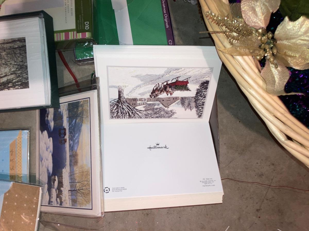 GREETING CARDS GALORE WRAPPING TOTE WITH A BUNCH OF TRIMMINGS FOR THE 🍒 TREE