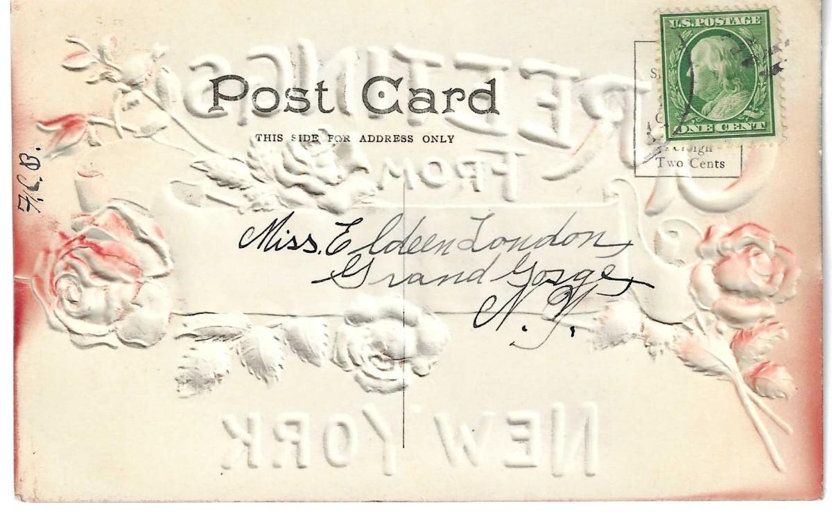 GREETINGS Middleburgh, NY, embossed, posted early 1900's, undivided back (pre 1907)