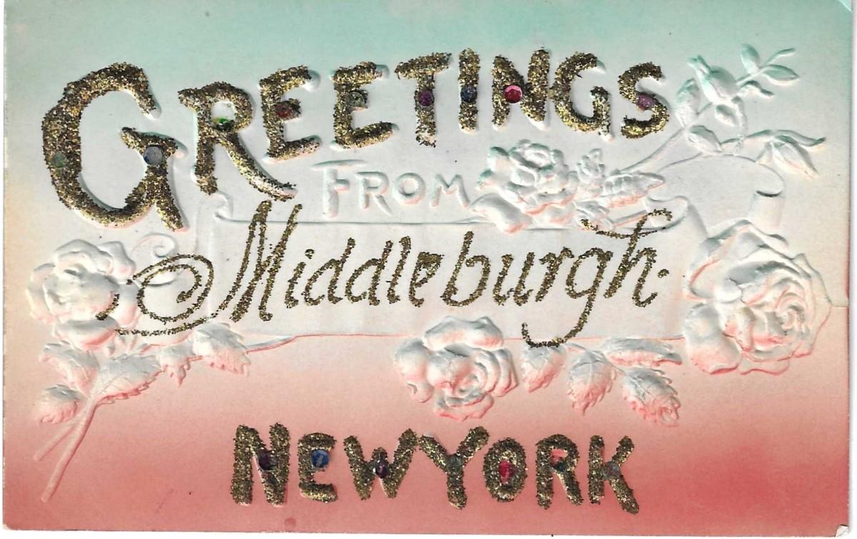 GREETINGS Middleburgh, NY, embossed, posted early 1900's, undivided back (pre 1907)