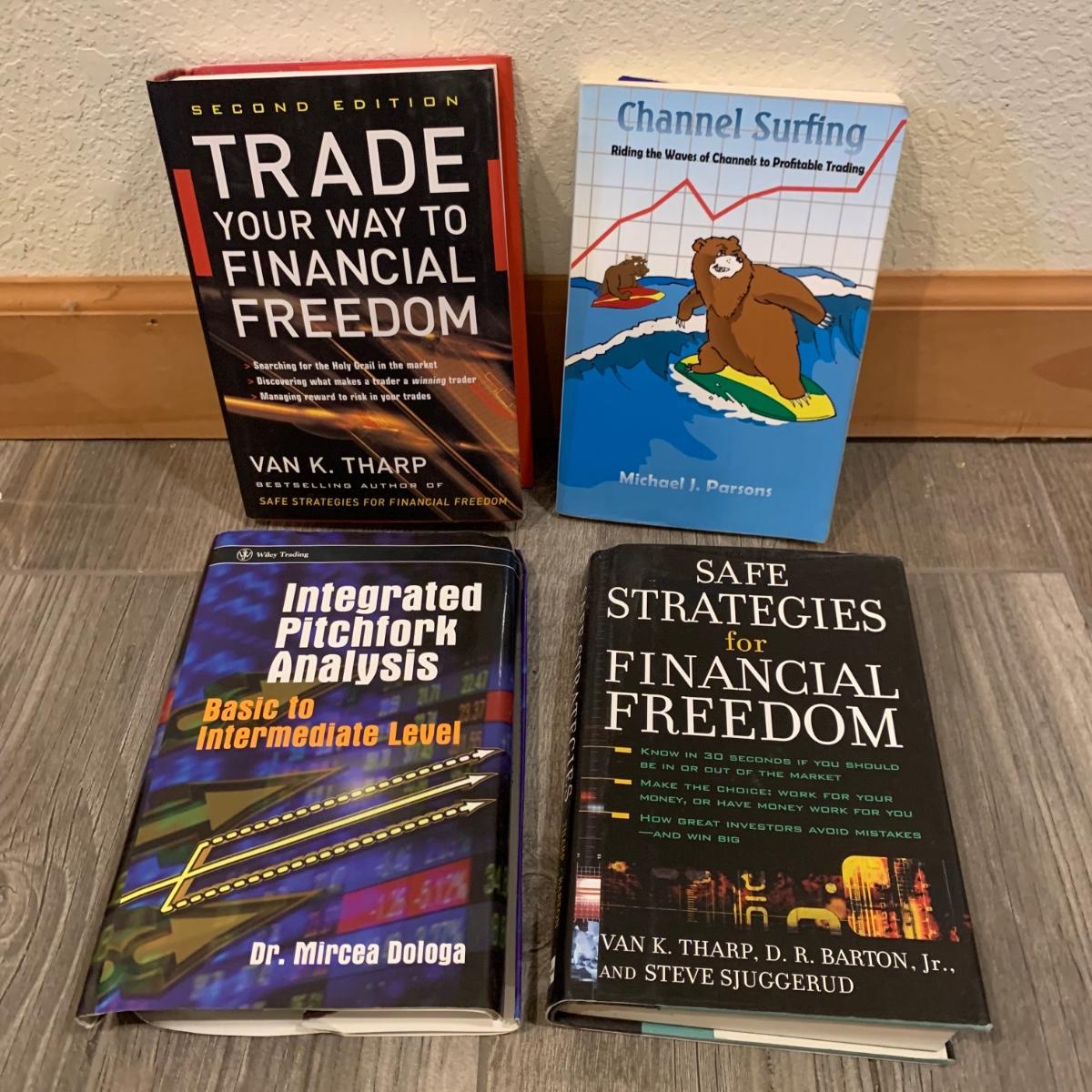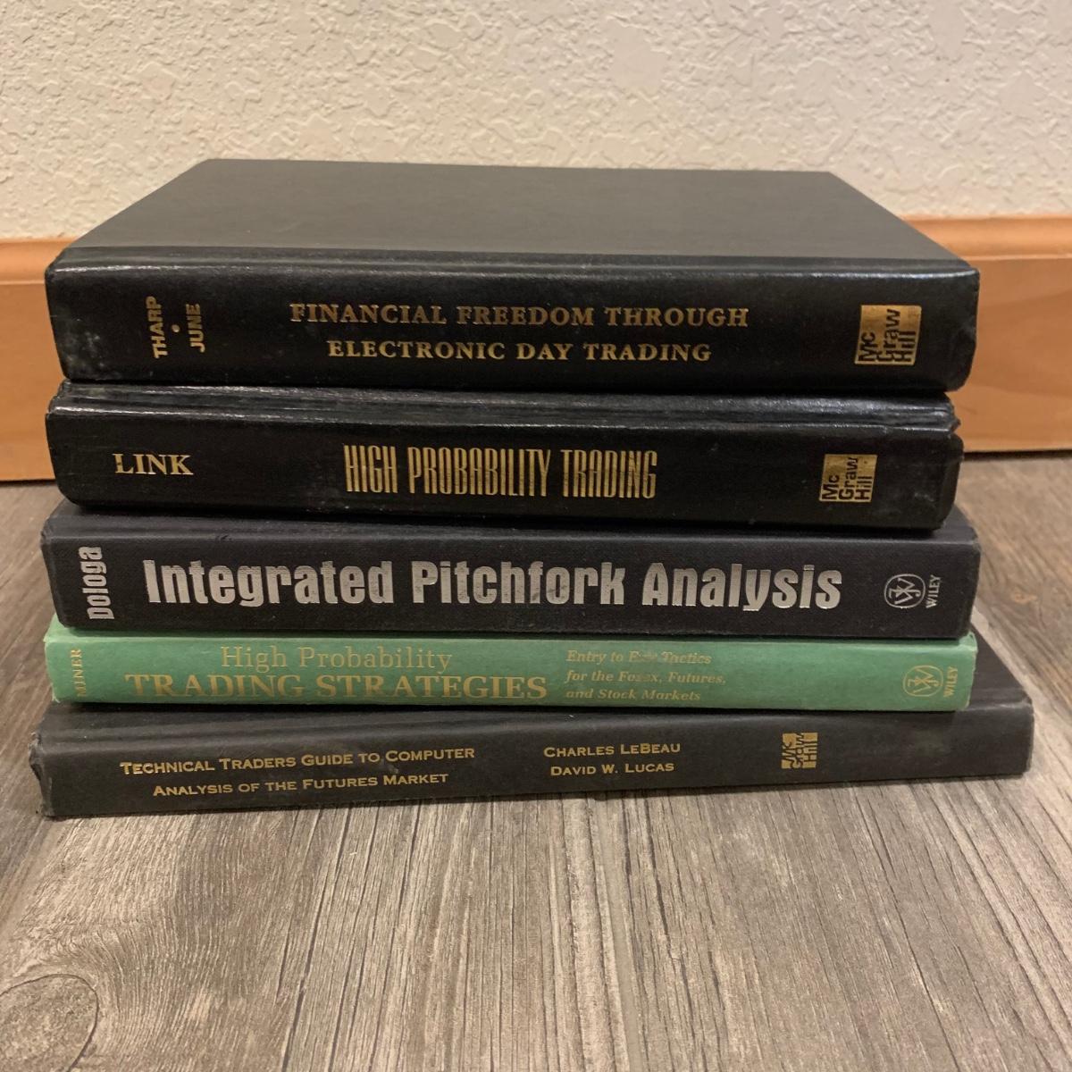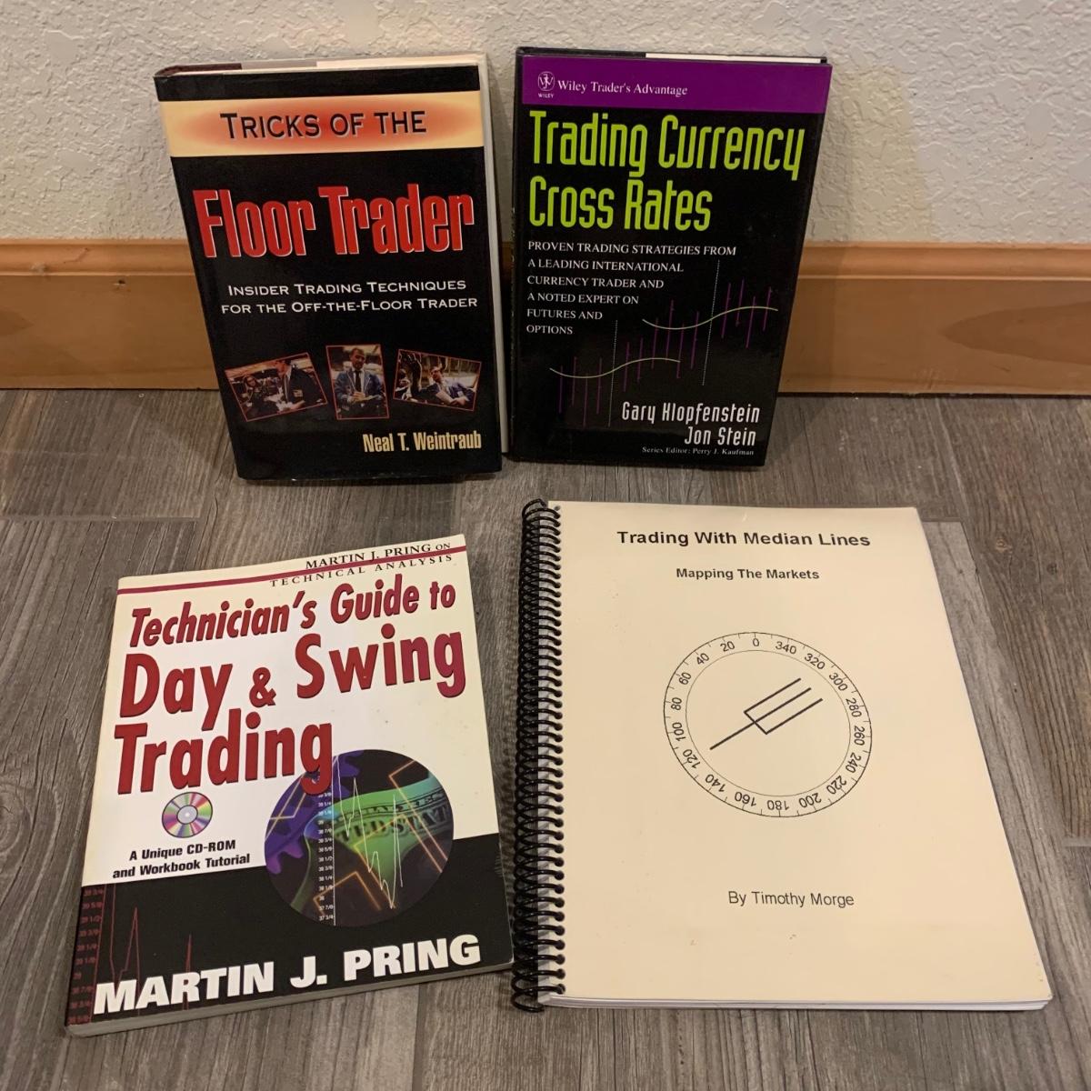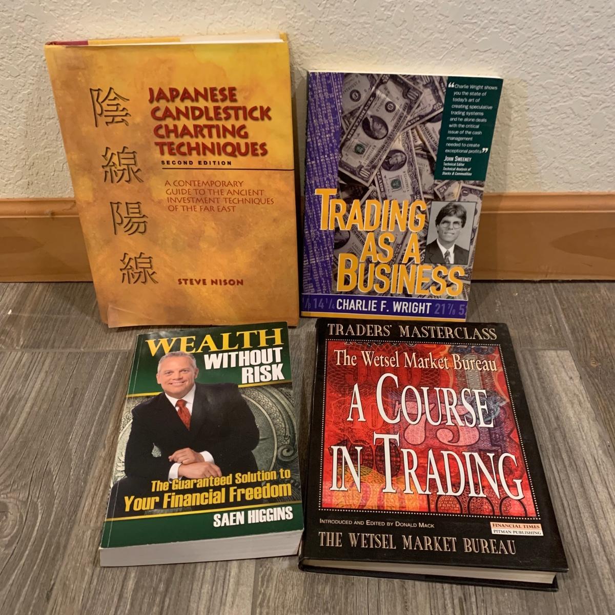 A set of nine Greg Capra Trade Secrets DVDs, plus some CD-ROMs and approximately 25 trading and economy related books. Everything appears to be in good condition.