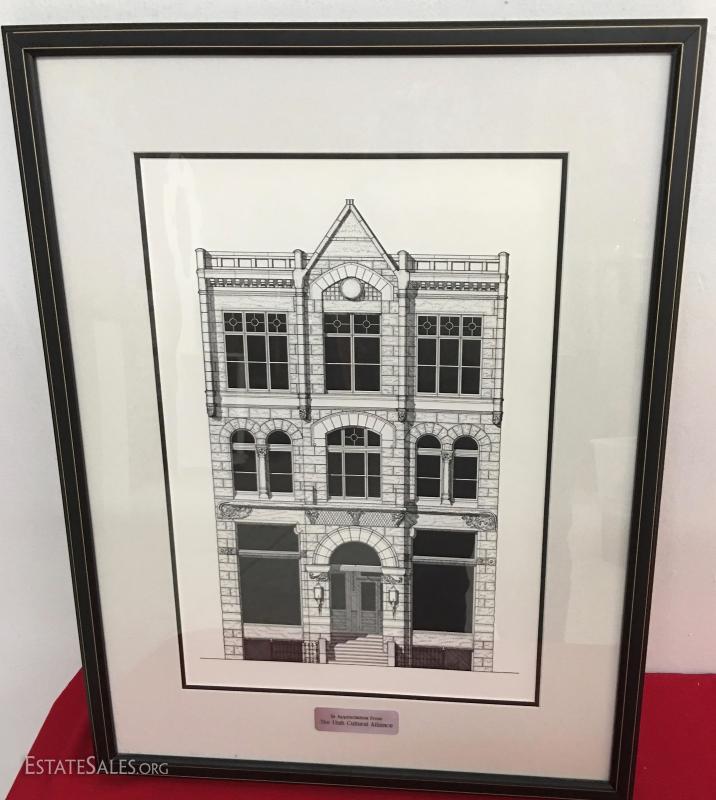 Nicely framed print with letter of authenticity of the Utah Commercial and Savings Bank at 22 East 100 South in Salt Lake City, Utah. In very good condition, measures 20" by 26".