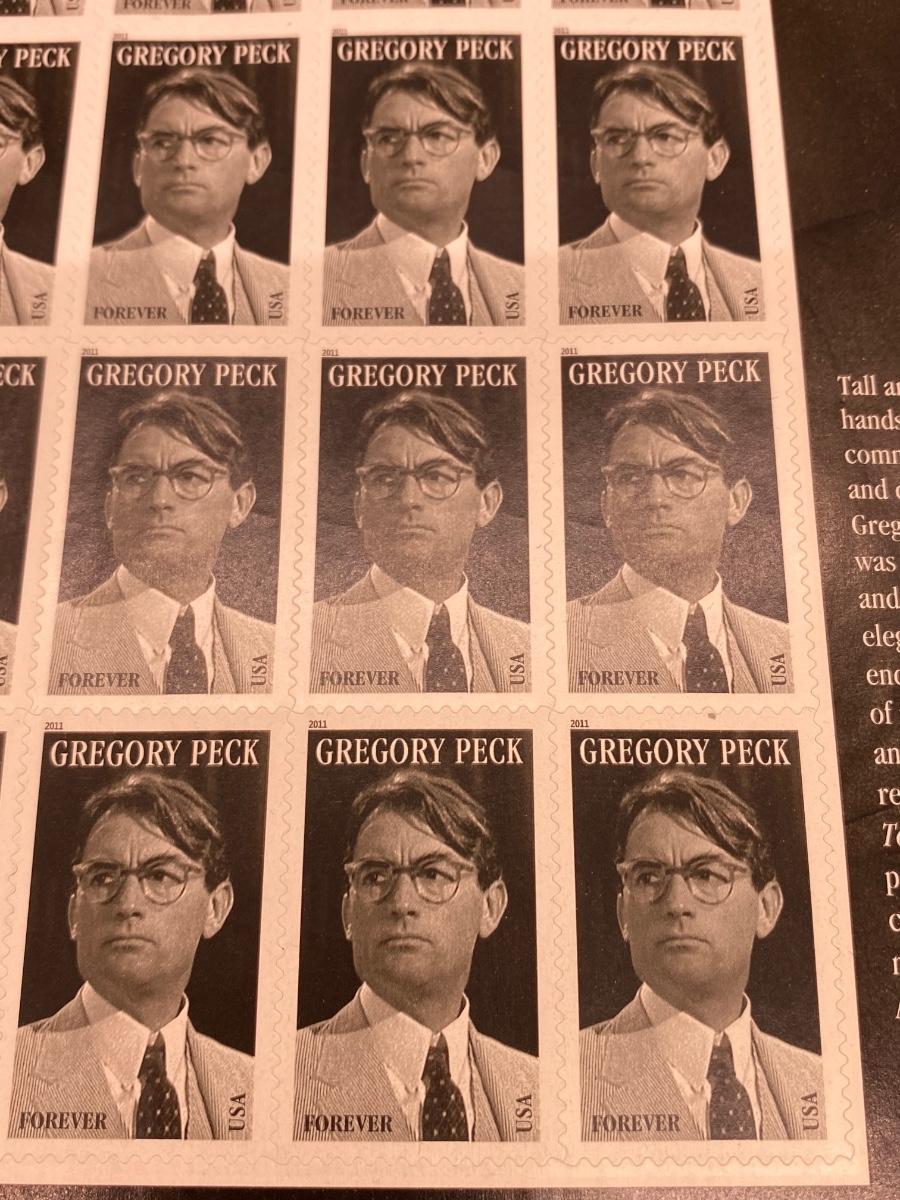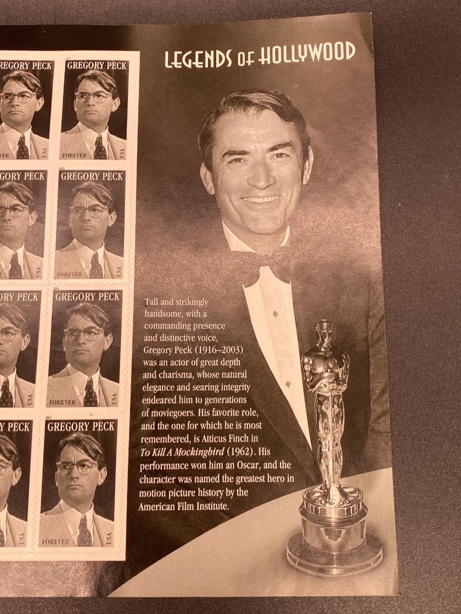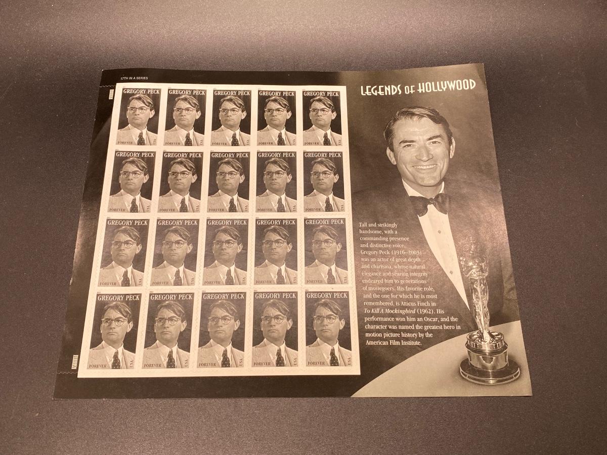 Gregory Peck Collector Sheet of Forever Stamps. Good condition, 20 stamps