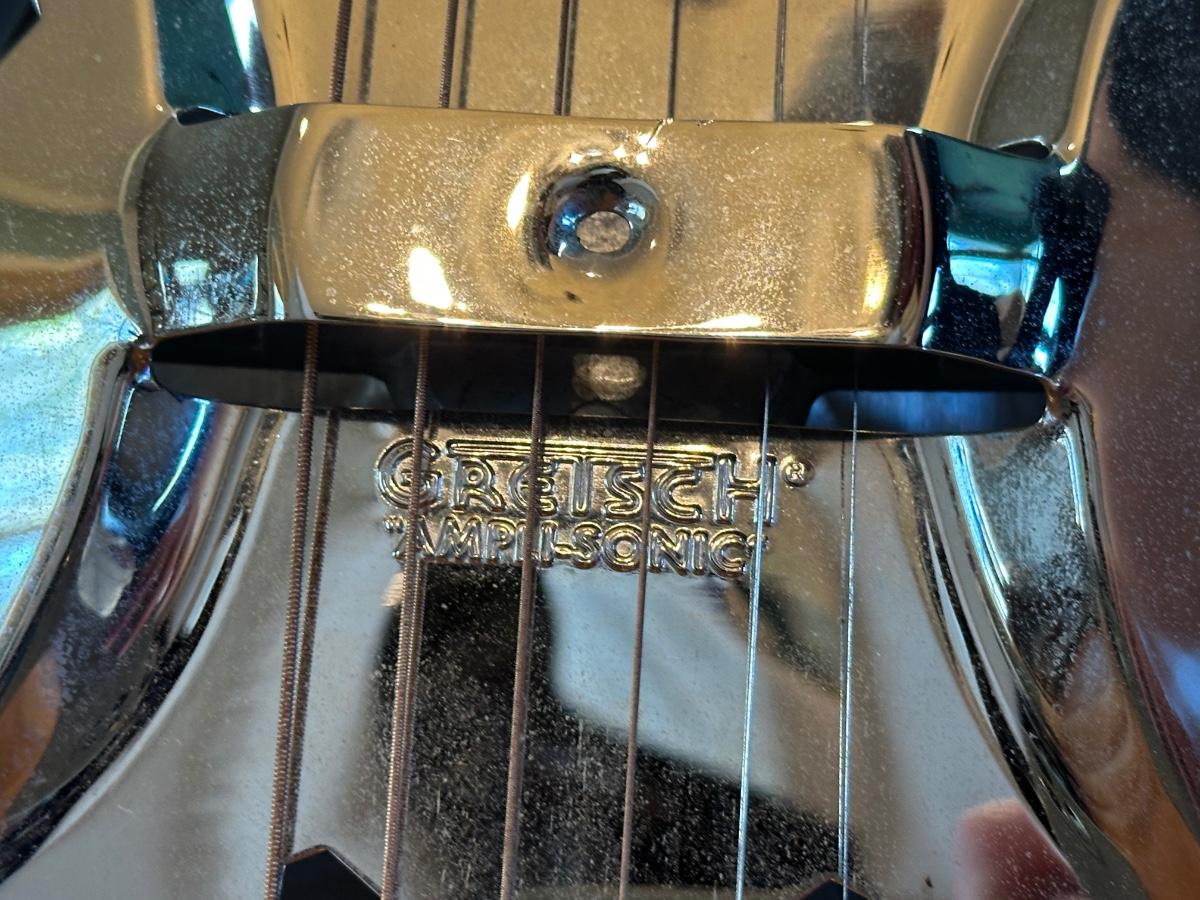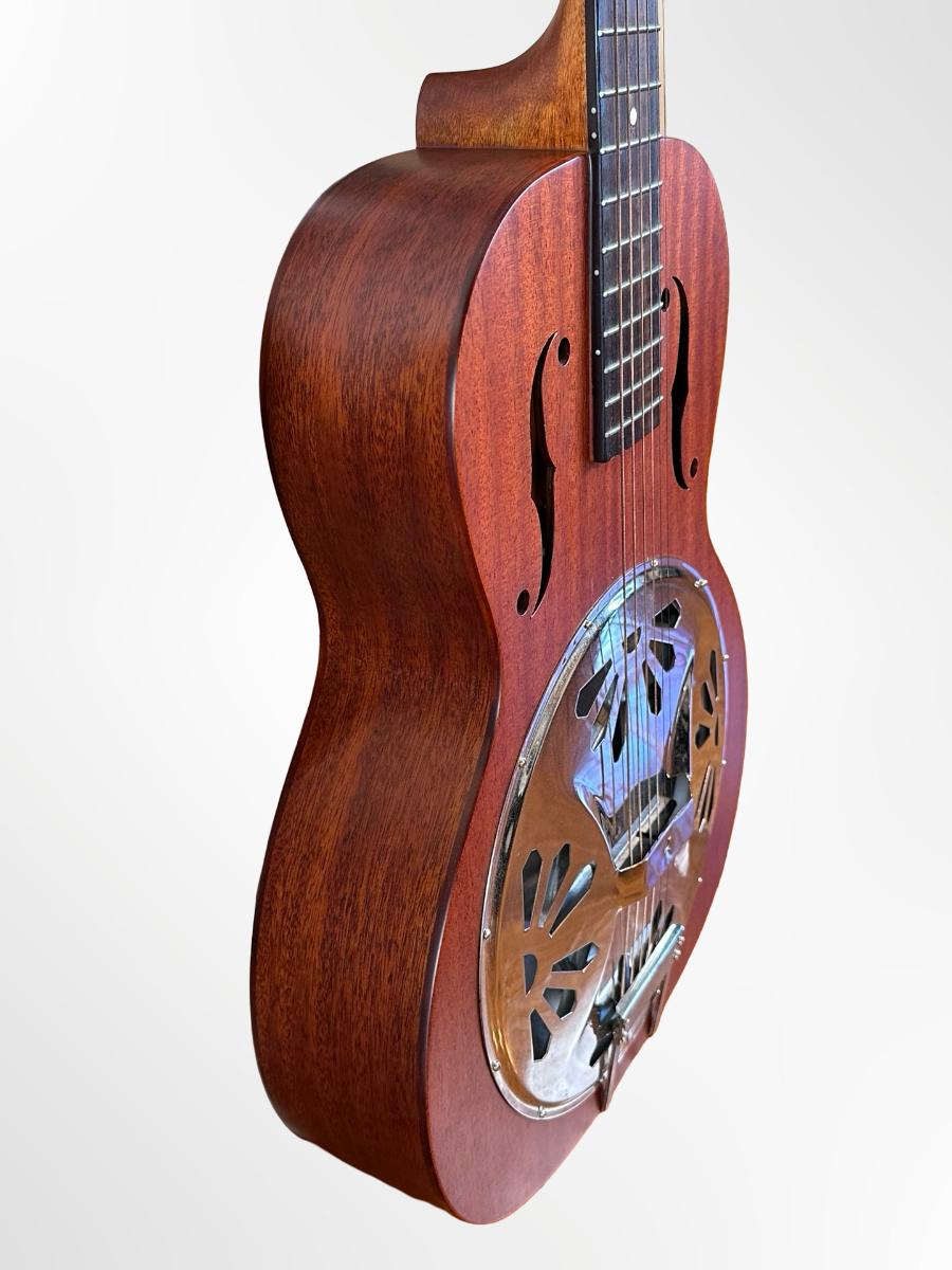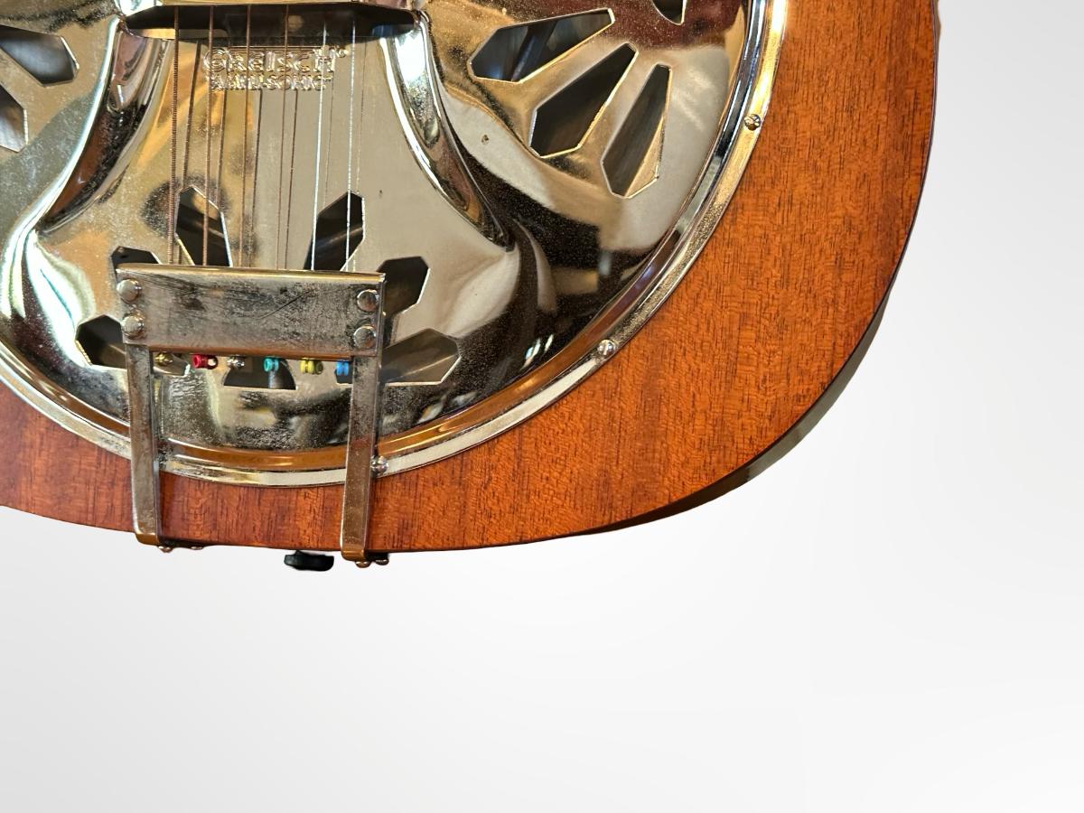 Gretsch G9200 Boxcar acoustic resonator guitar with mahogany body and nickel resonator cone. Features f-holes, open-gear tuners, and a warm, bluesy tone that’s great for slide or fingerstyle playing. Handcrafted in China, model CAXR203280. Excellent overall condition.