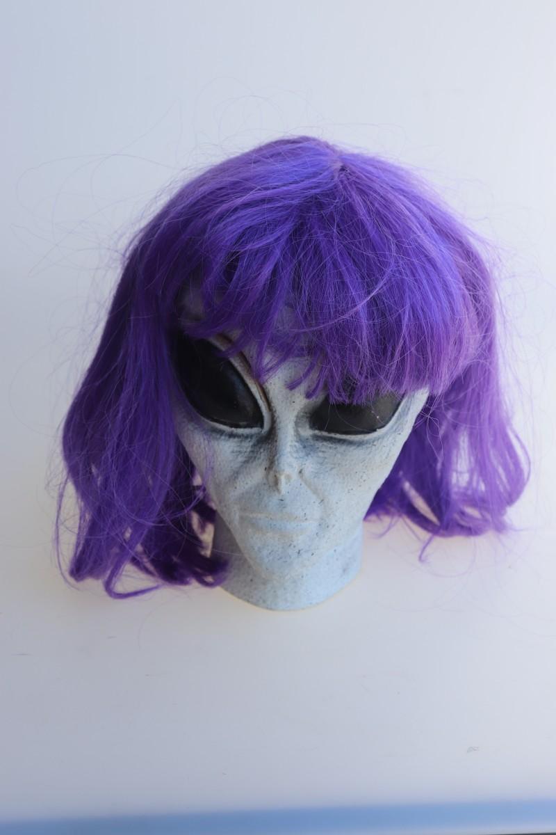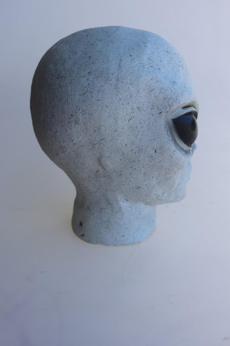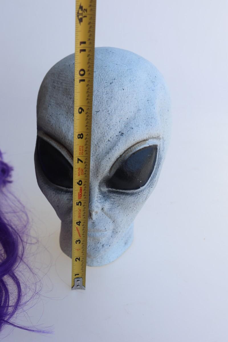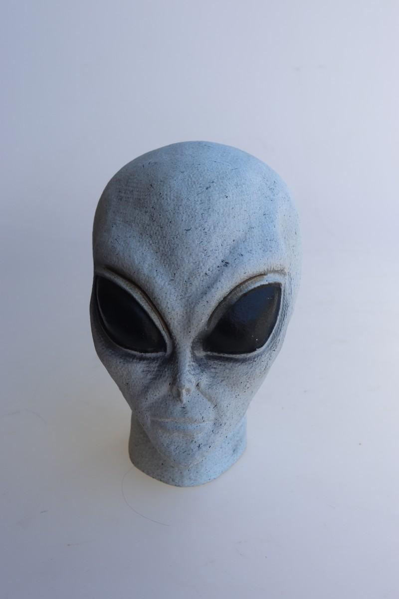 A fun grey alien head decoration, ideal for adding a quirky touch to your home decor or as part of a themed party setup. Its unique design makes it a conversation starter.