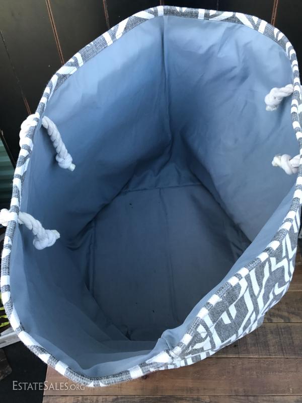 Grey and white laundry bag