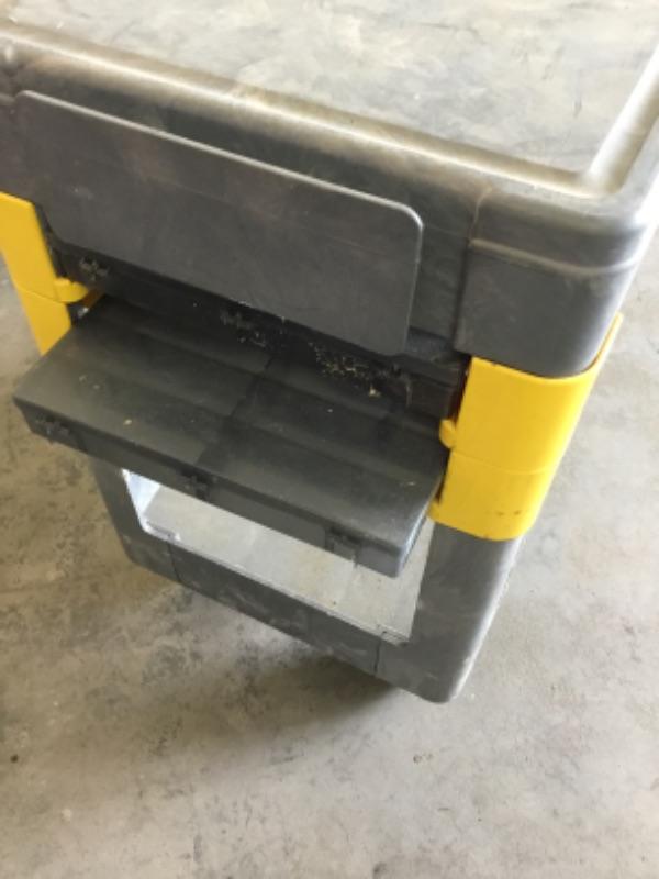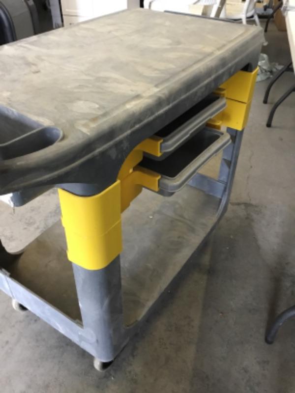 Grey and yellow plastic wheeled utility cart to cart lot  1072