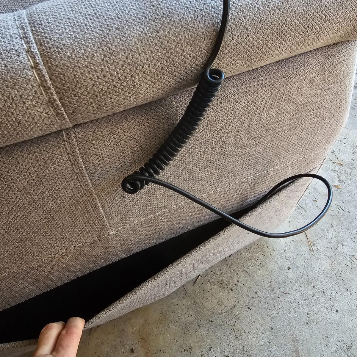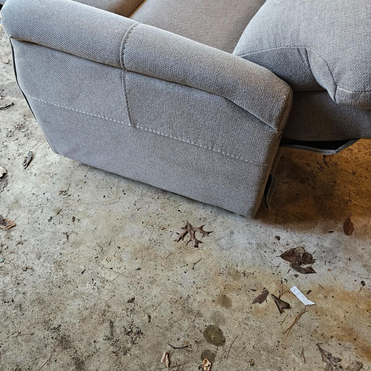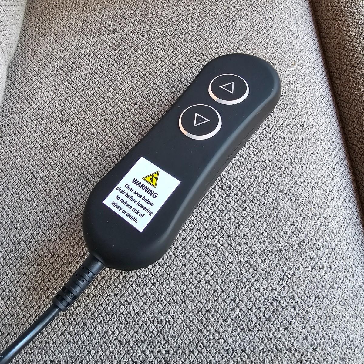 Dove grey fabric on this Ashley Furniture power lift reclining chair. Has side pocket for controls and power box. Simple two button up/down operation. Chair raises to full standing height and reclines almost horizontal. Chair at standard position measures 30" x 33" x 40" H. Smooth, quiet motion of operation. Chair powered on when plugged in. See photos for details. Local pickup only. Winning bidder must bring assistance to help move and load this item due to its weight and/or size.