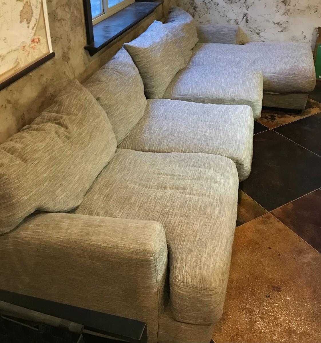 3 Separate pieces. Has some slight stains that can more then likely be cleaned 43" wide x 140" long x 22" high