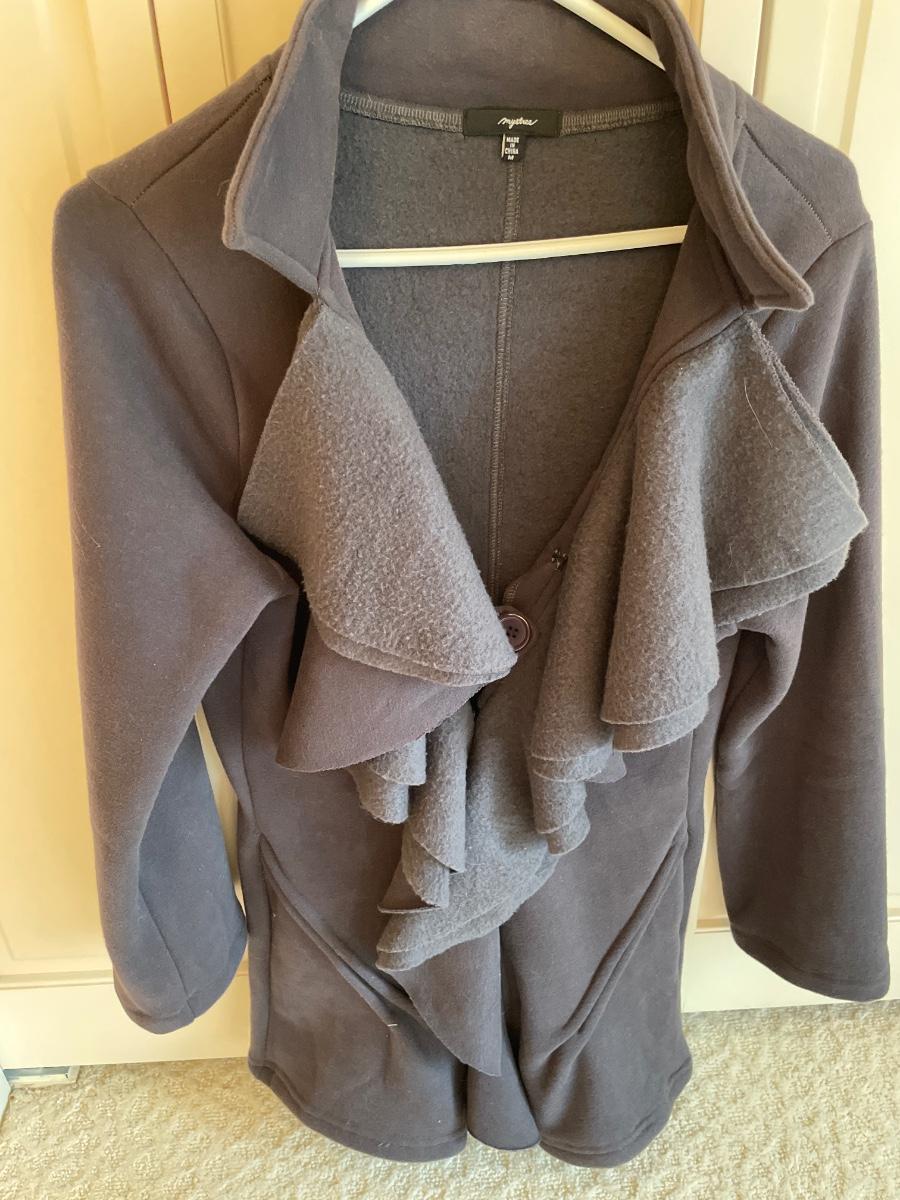 Grey ruffle front coat