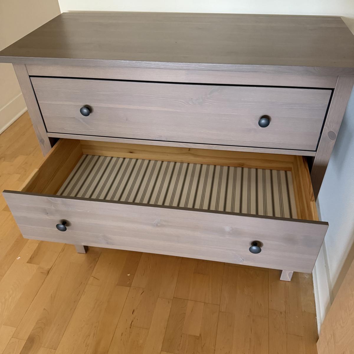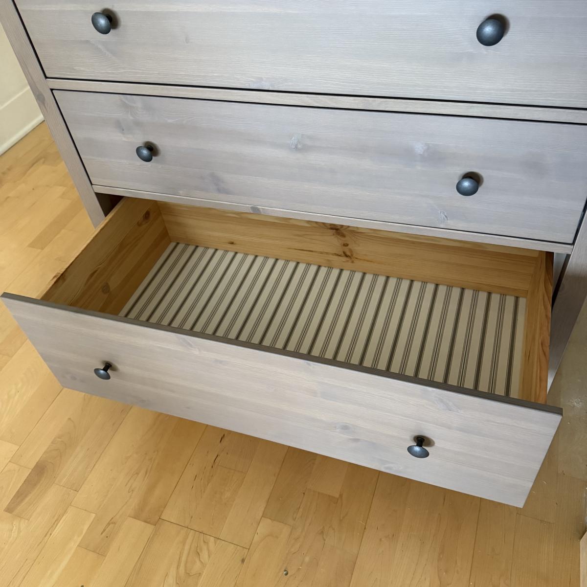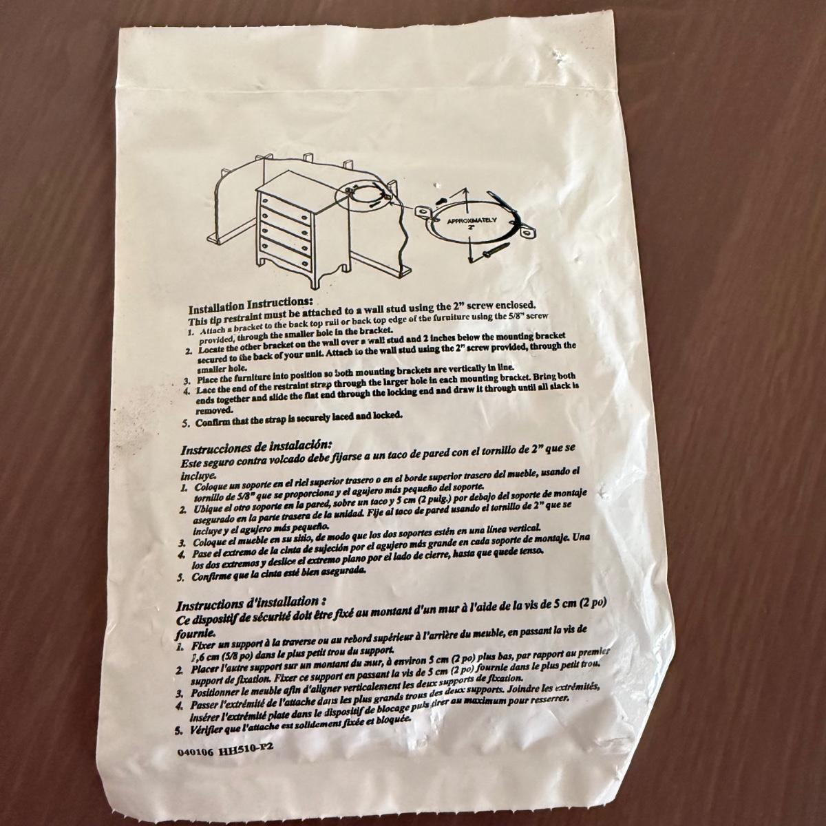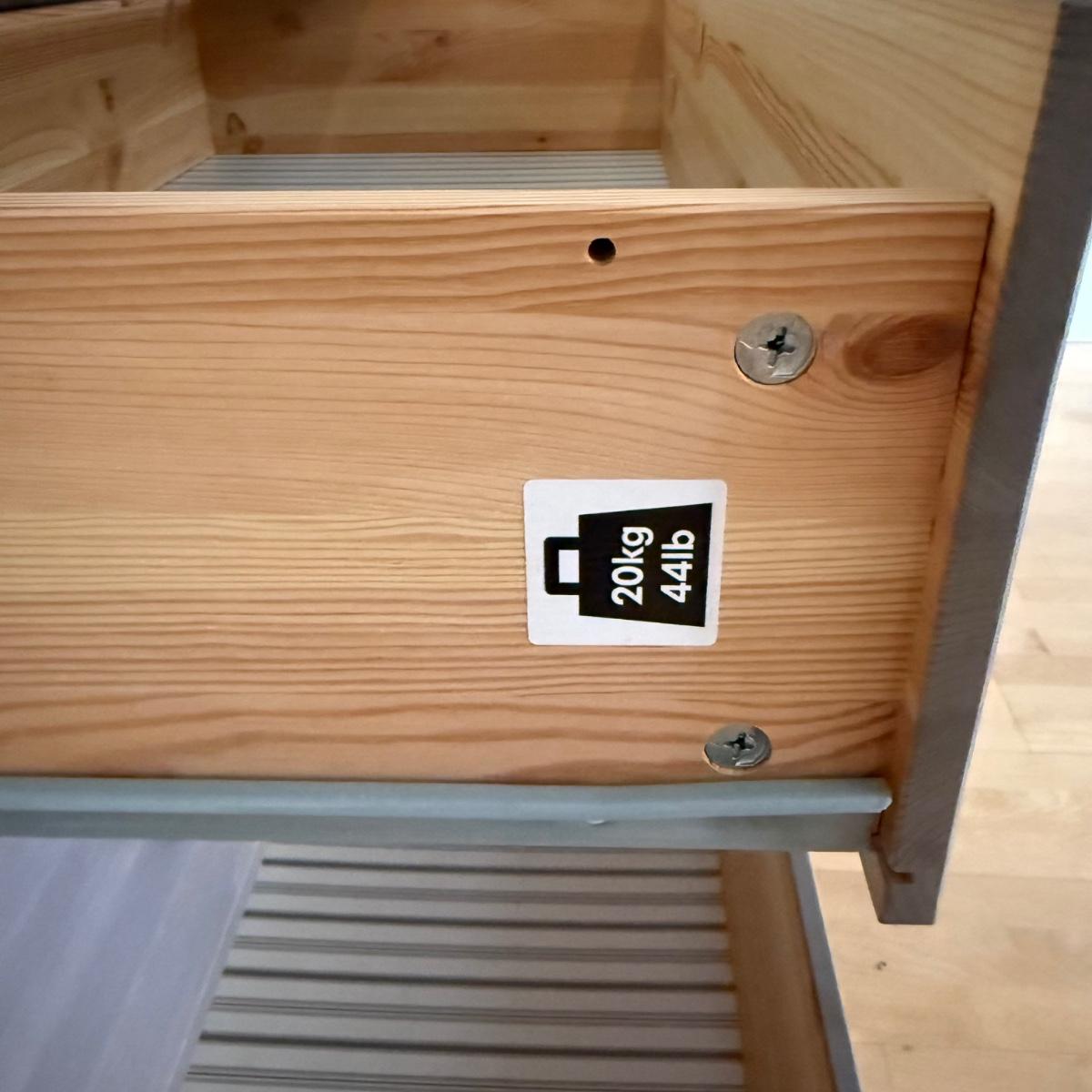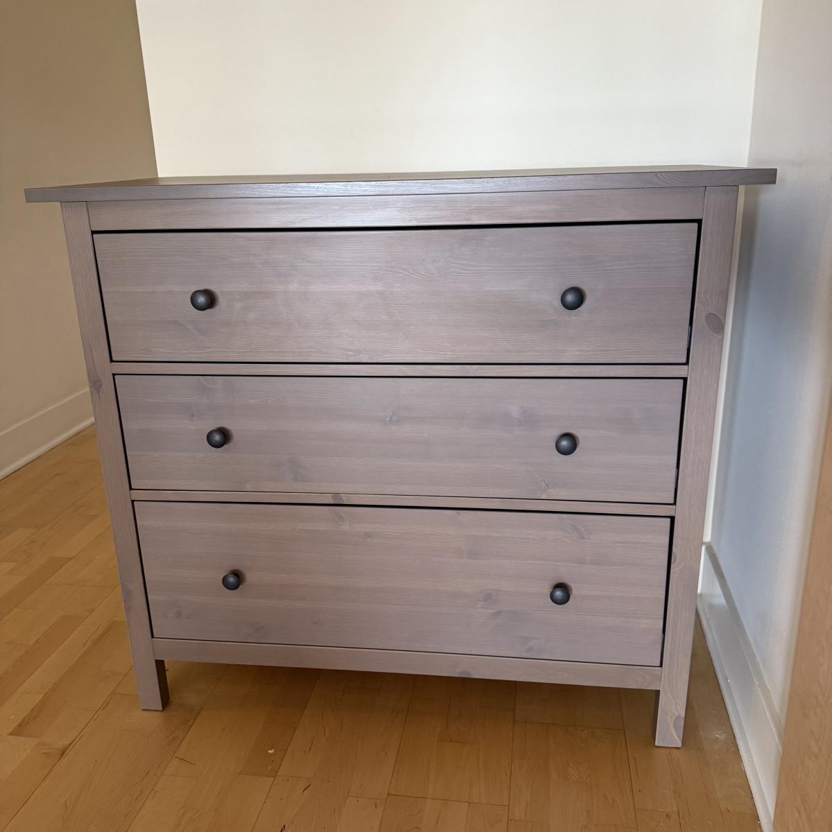 This lot contains a gray three drawer dresser. It appears to be made of both solid and manufactured wood. It measures 42.25” x 19.5” x 37.5H. It also comes with some anti-tipping hardware. Local pick up only. Winning bidder must bring assistance to help move and load this item due to its weight and/or size.