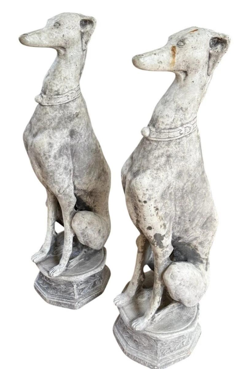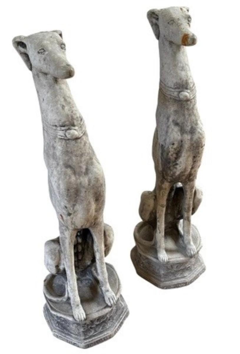 Pair of Cast Concrete Greyhound Whippet Dog Garden Sculptures 9" x 31" Each