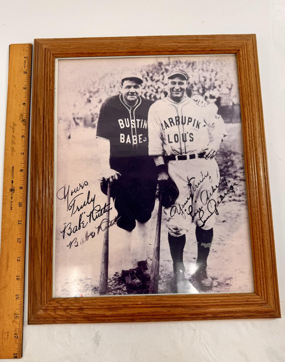 Print of a famous 1927 photograph featuring legendary baseball players Babe Ruth and Lou Gehrig. Official MLB reprint.