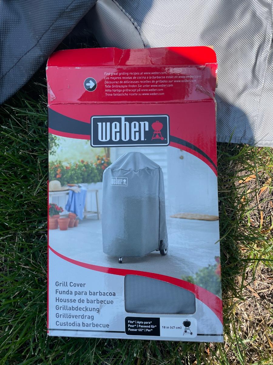 The Weber grill cover in box is for an 18” charcoal grill and the silver one is an 18” one too!