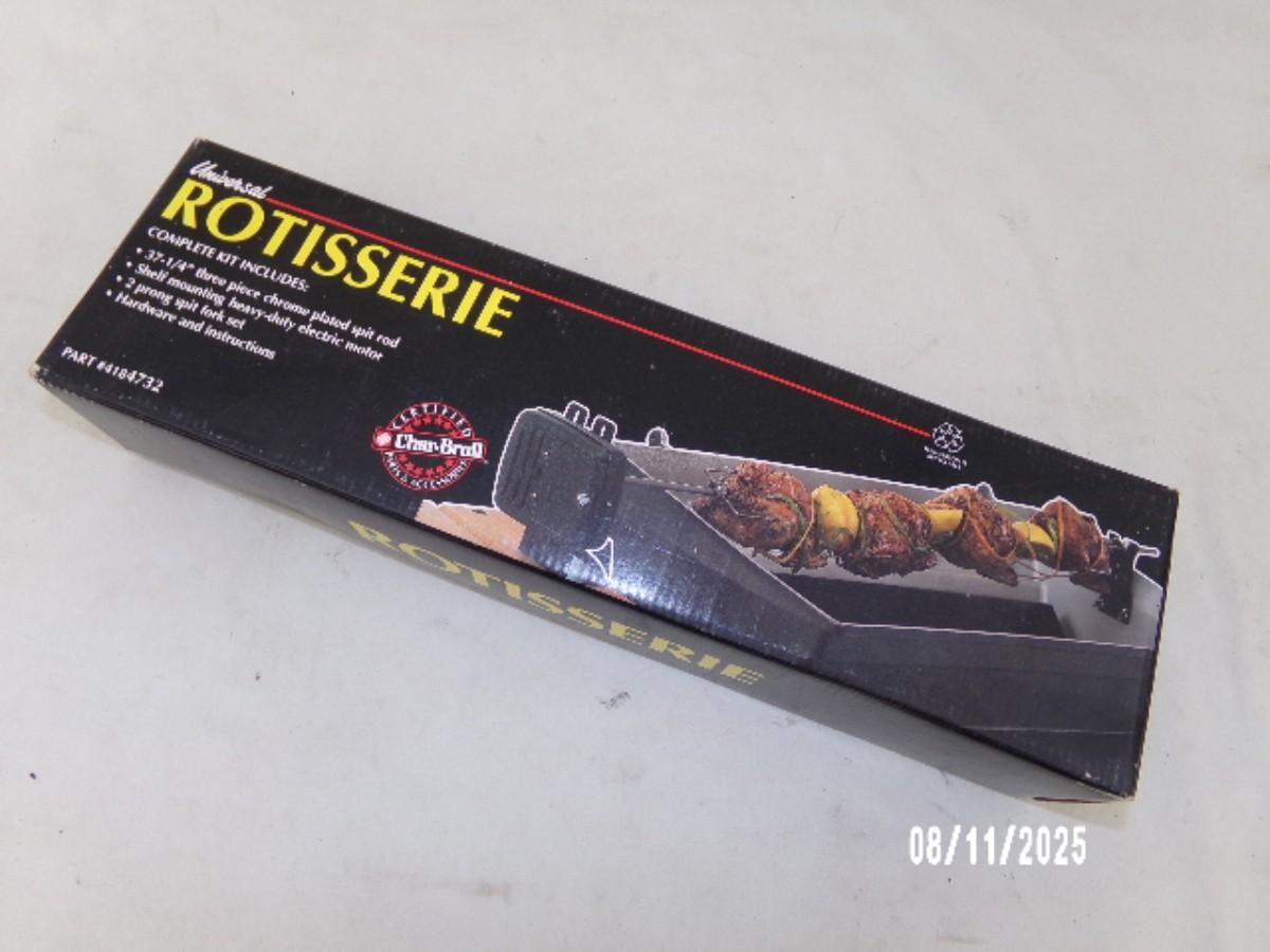 Grill Rotisserie Kit, Universal fit most ourdoor grills. W/instructions.LNIB