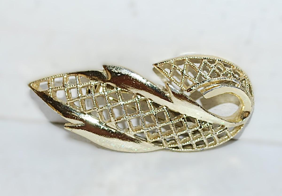 Grill Style SWIRL BROOCH (2" x ¾") on a Gold Tone Setting