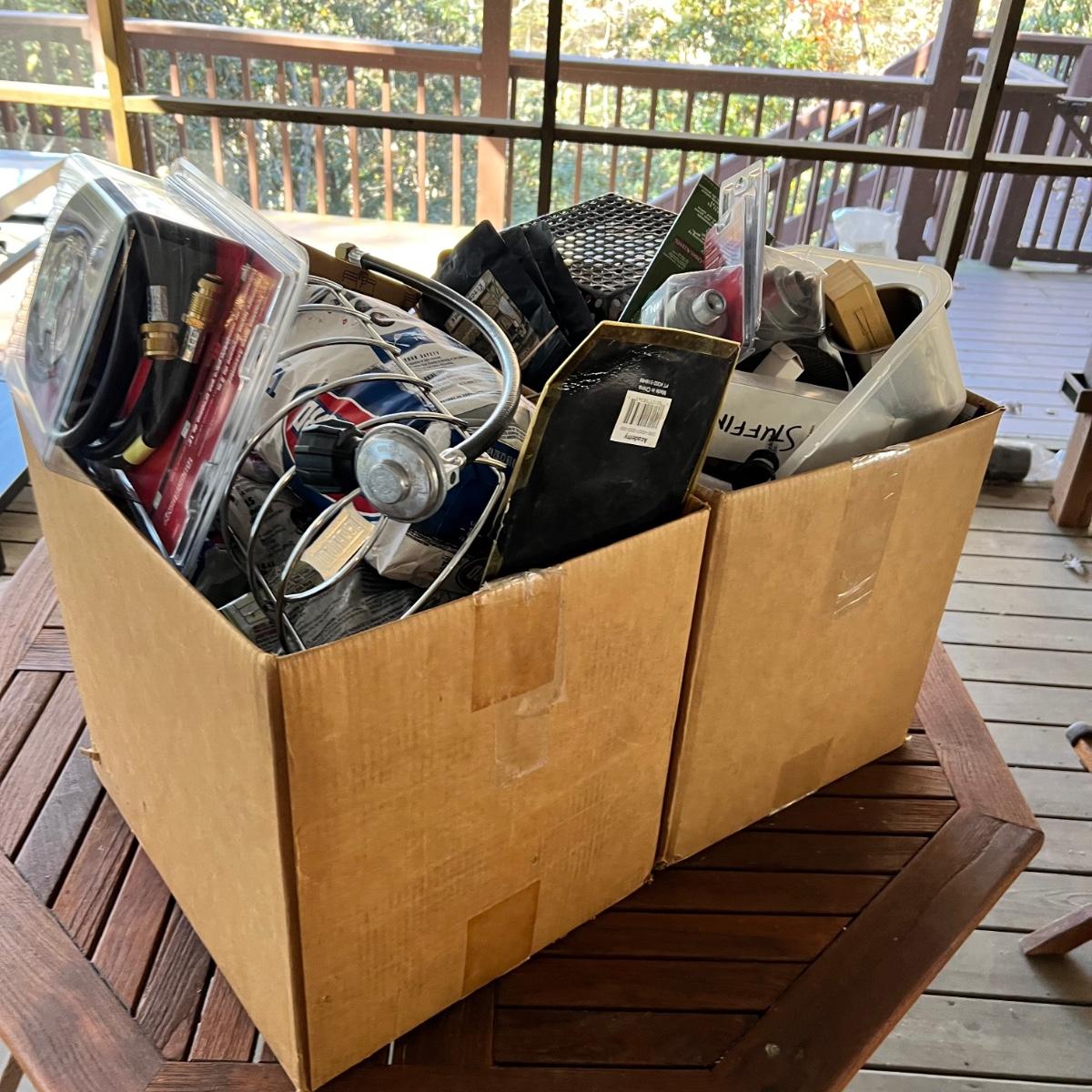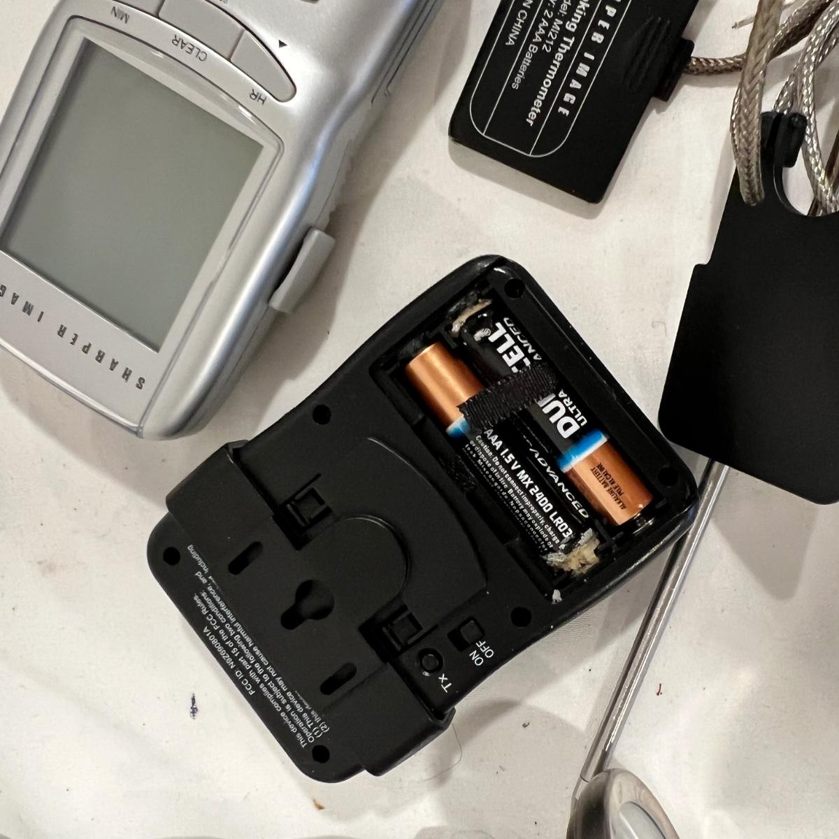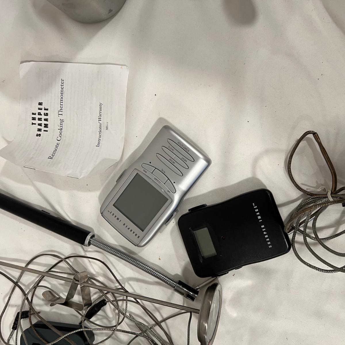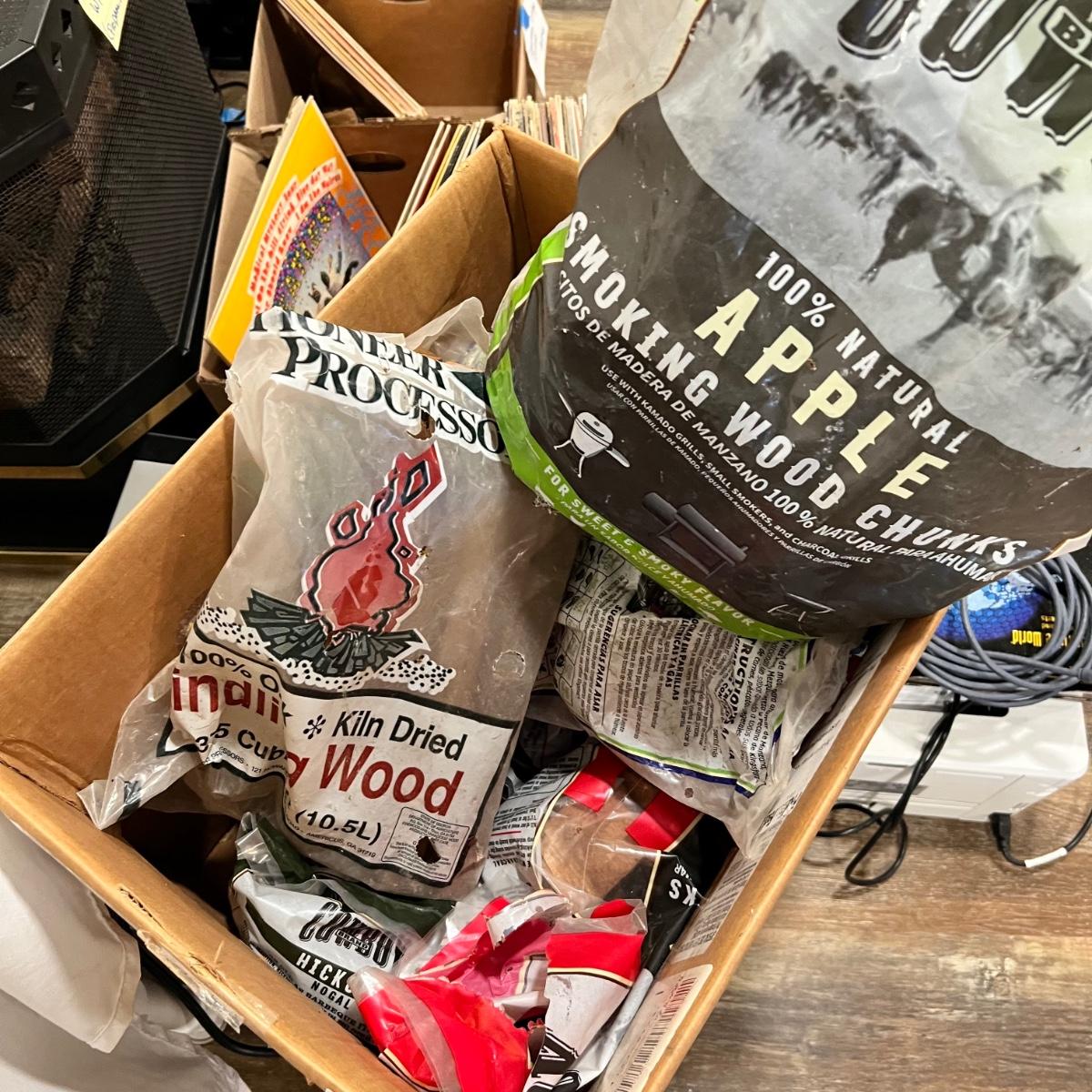 Huge lot of grilling tools and accessories. The charcoal bag is unopened but the bags of wood chips have all been opened and are mostly half full. Most of the many meat thermometers are battery operated and were not tested. The Sondiko propane torch was also not tested. See photos for full inventory.