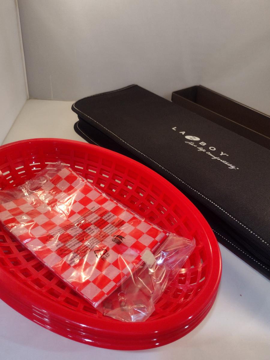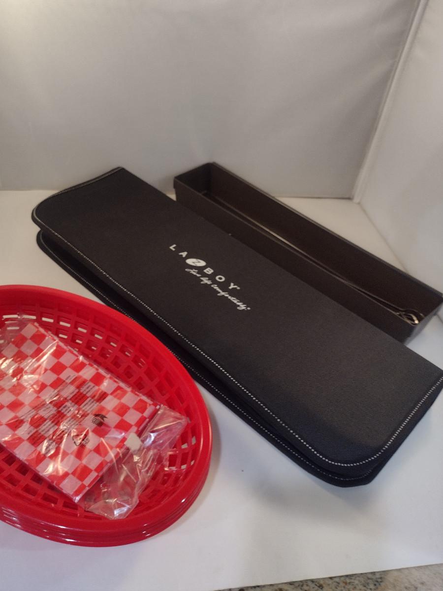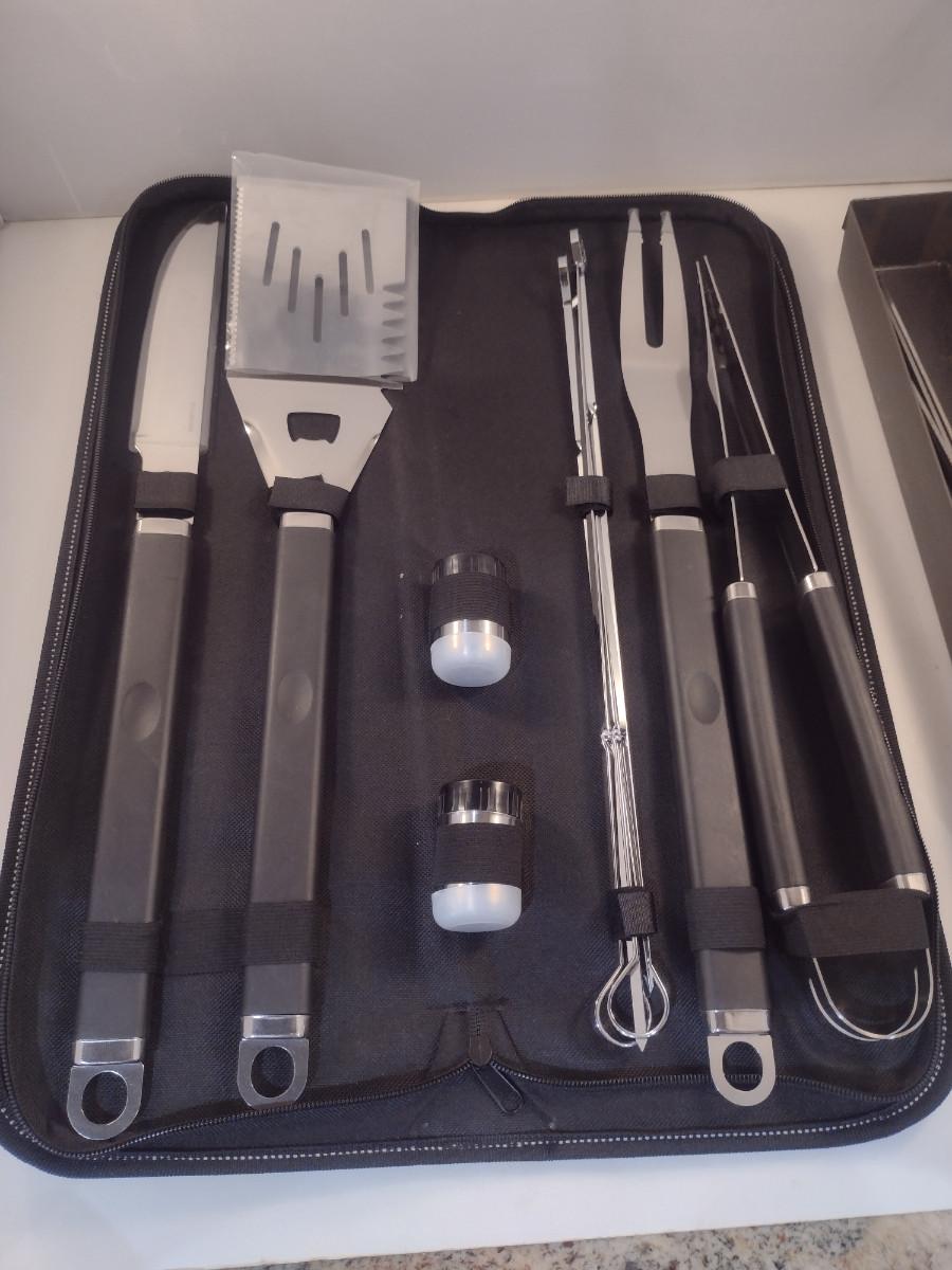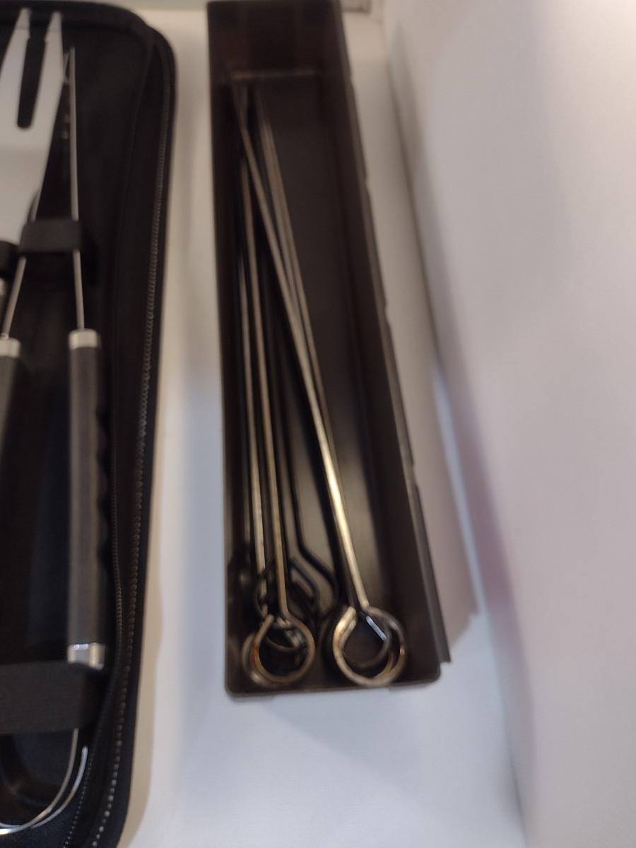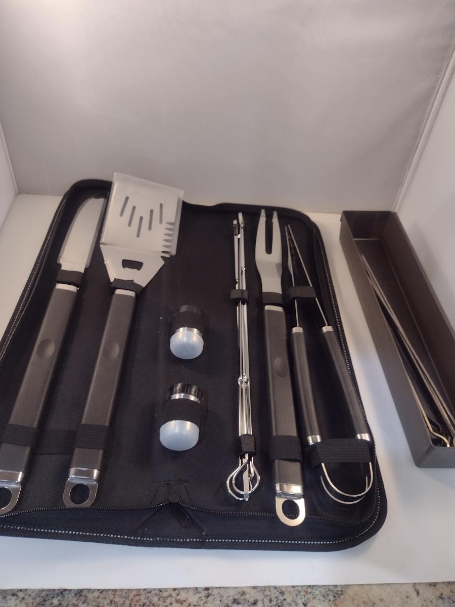 Grilling Accessories- Utensil Set, Metal Skewers, Plastic Serving Baskets with Liners. Utensil set appears to be new and is very nice.