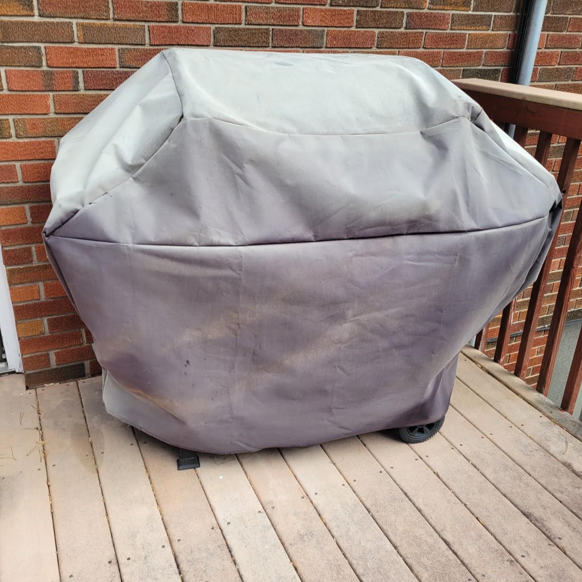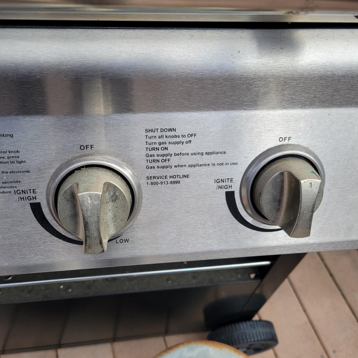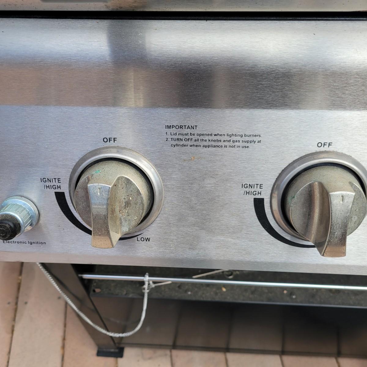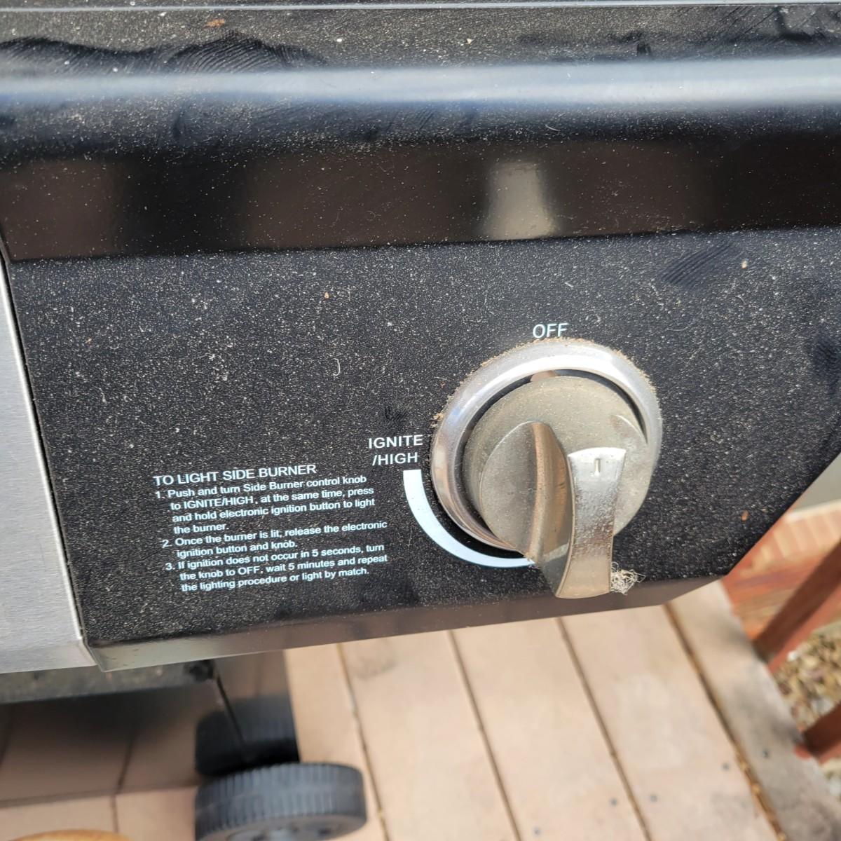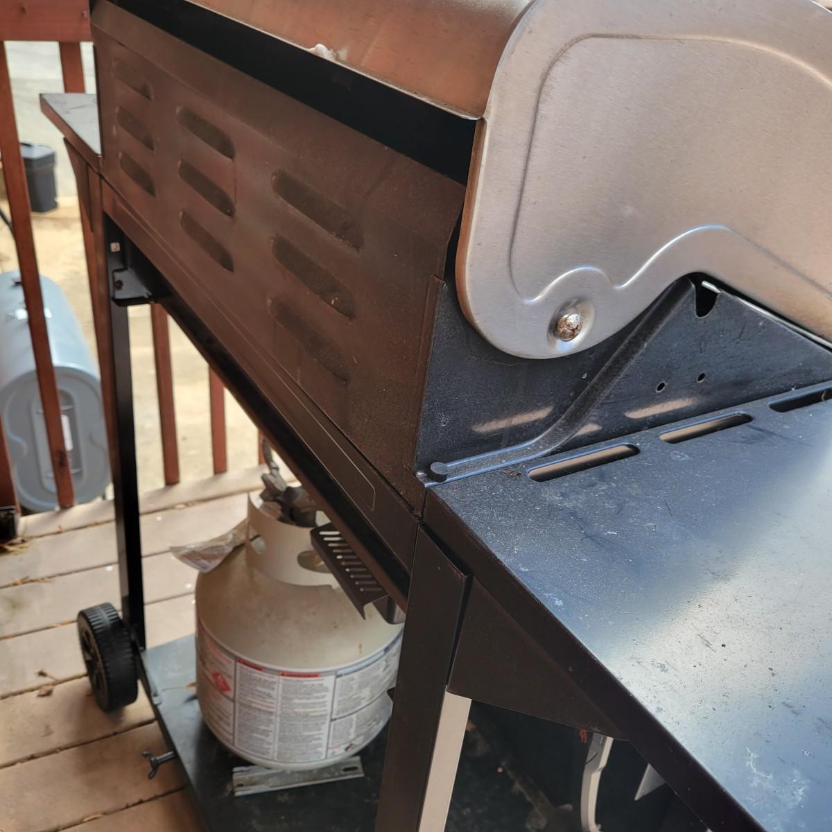 This is a GrillMaster four burner propane grill with a side burner. Grill fired up when tested. Lot also includes a set of grilling tools, a cover and three propane cylinders. Measures approximately 25" x 22" x 46". Local pickup only. Winning bidder must bring assistance to help move and load this item due to its weight and/or size.