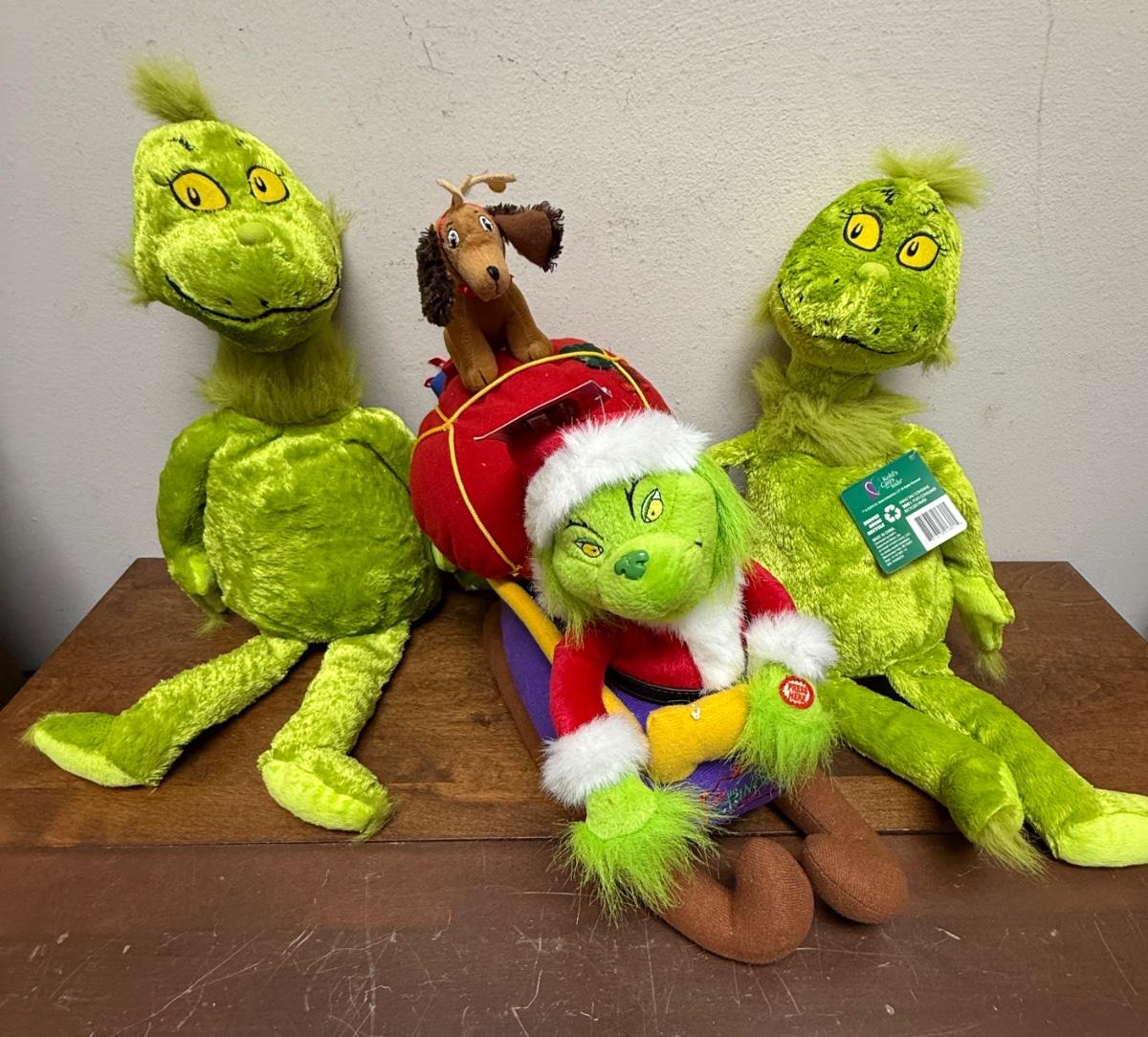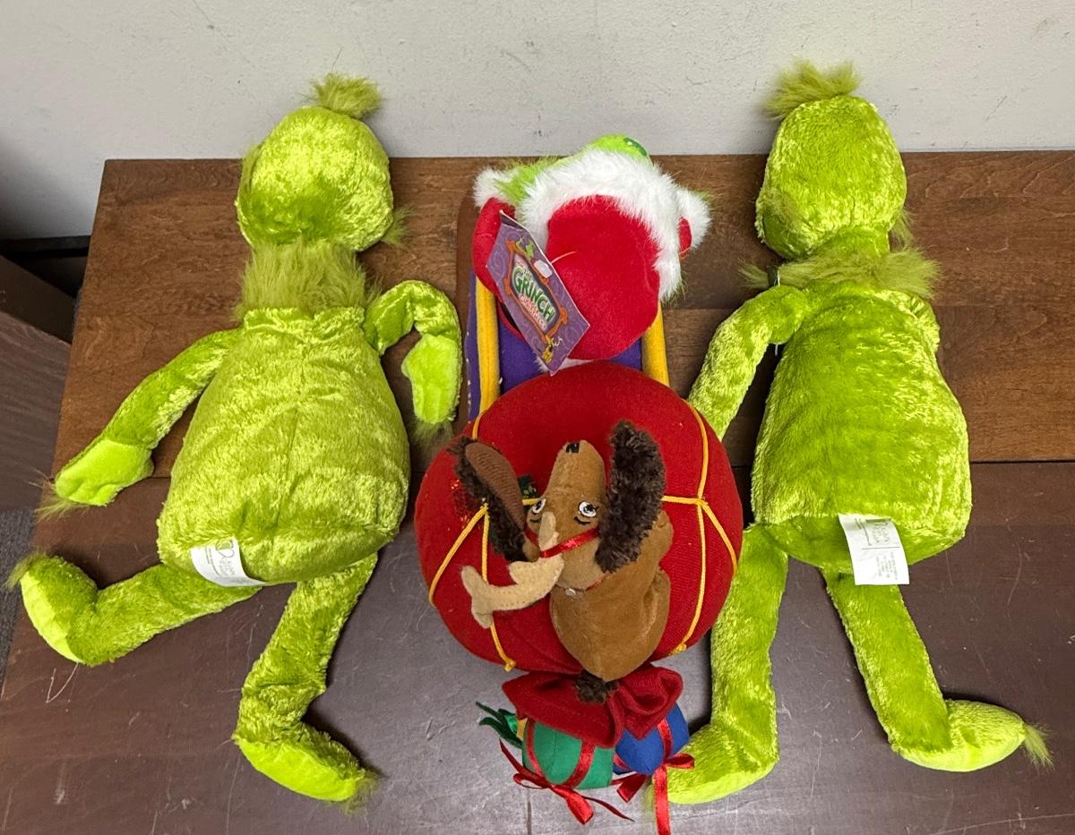 Grinch Who Stole Christmas Plush Dr Seuss 18" Green 2010 & Sleigh Ride with Grinch & Max the dog