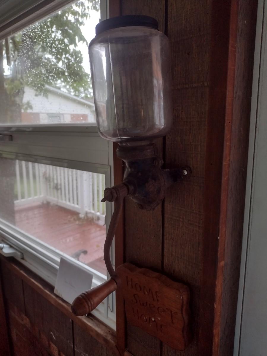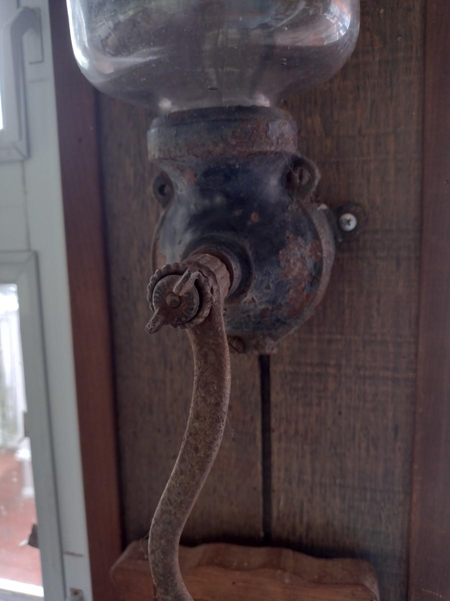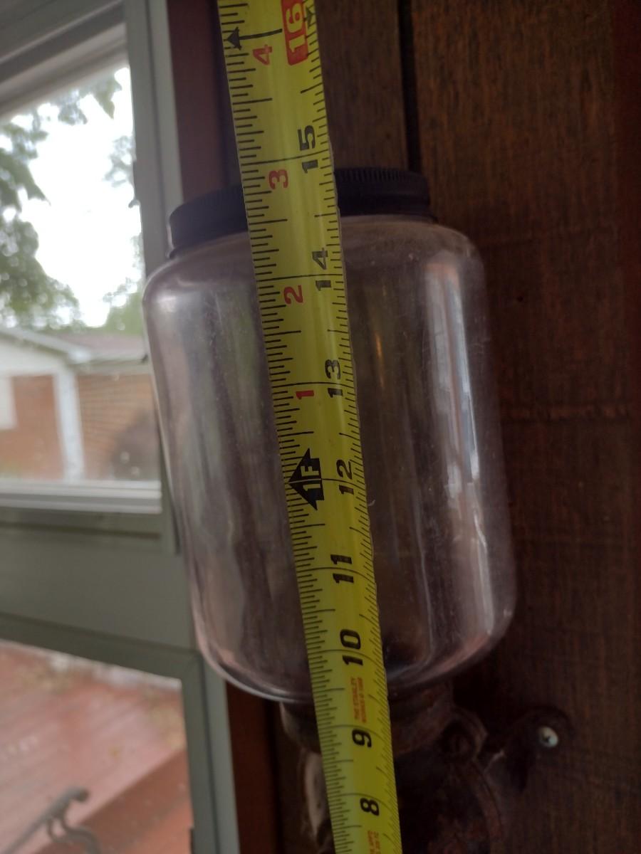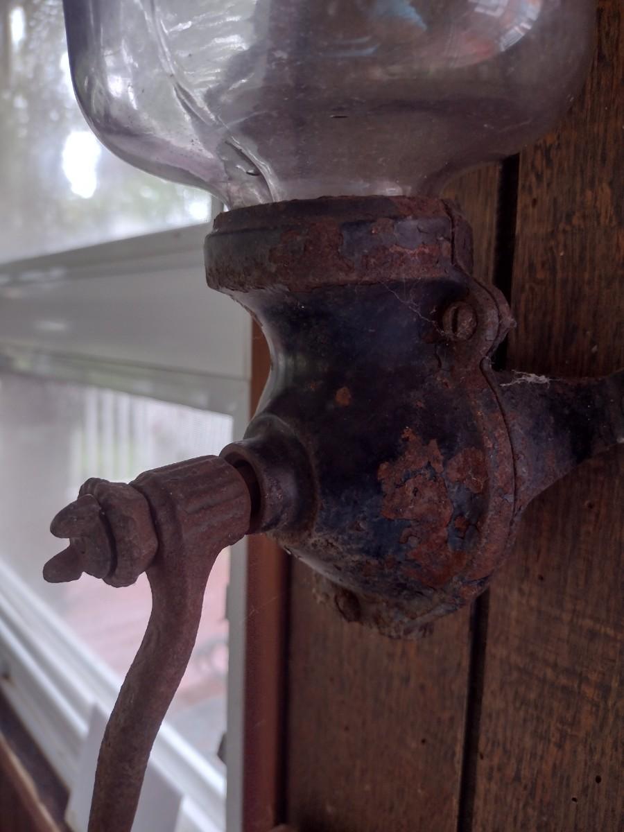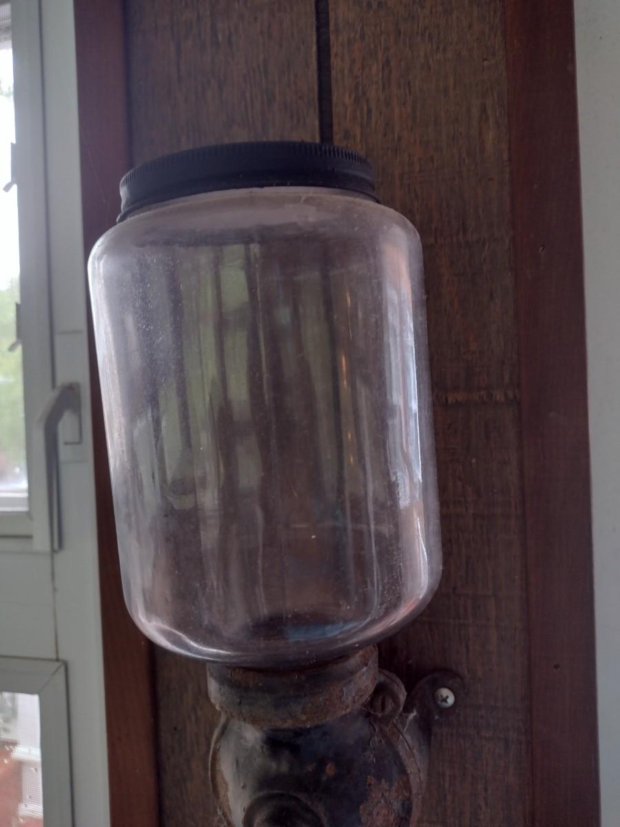 Antique Coffee Grinder with Glass Jar bring tools to remove from wall