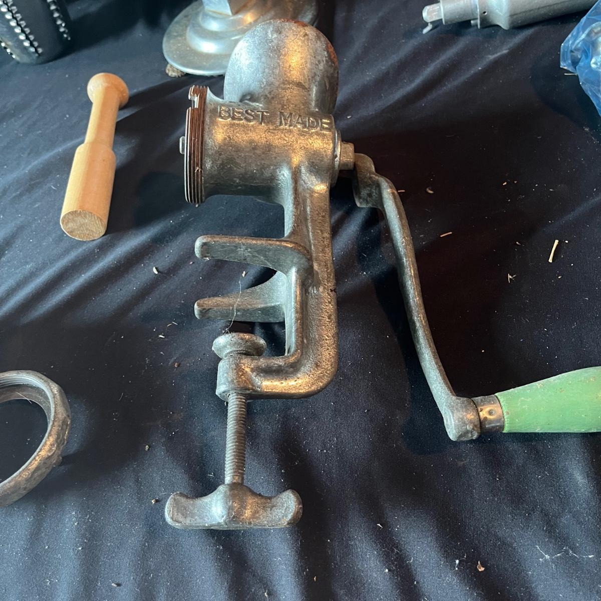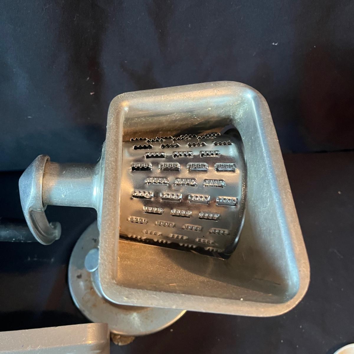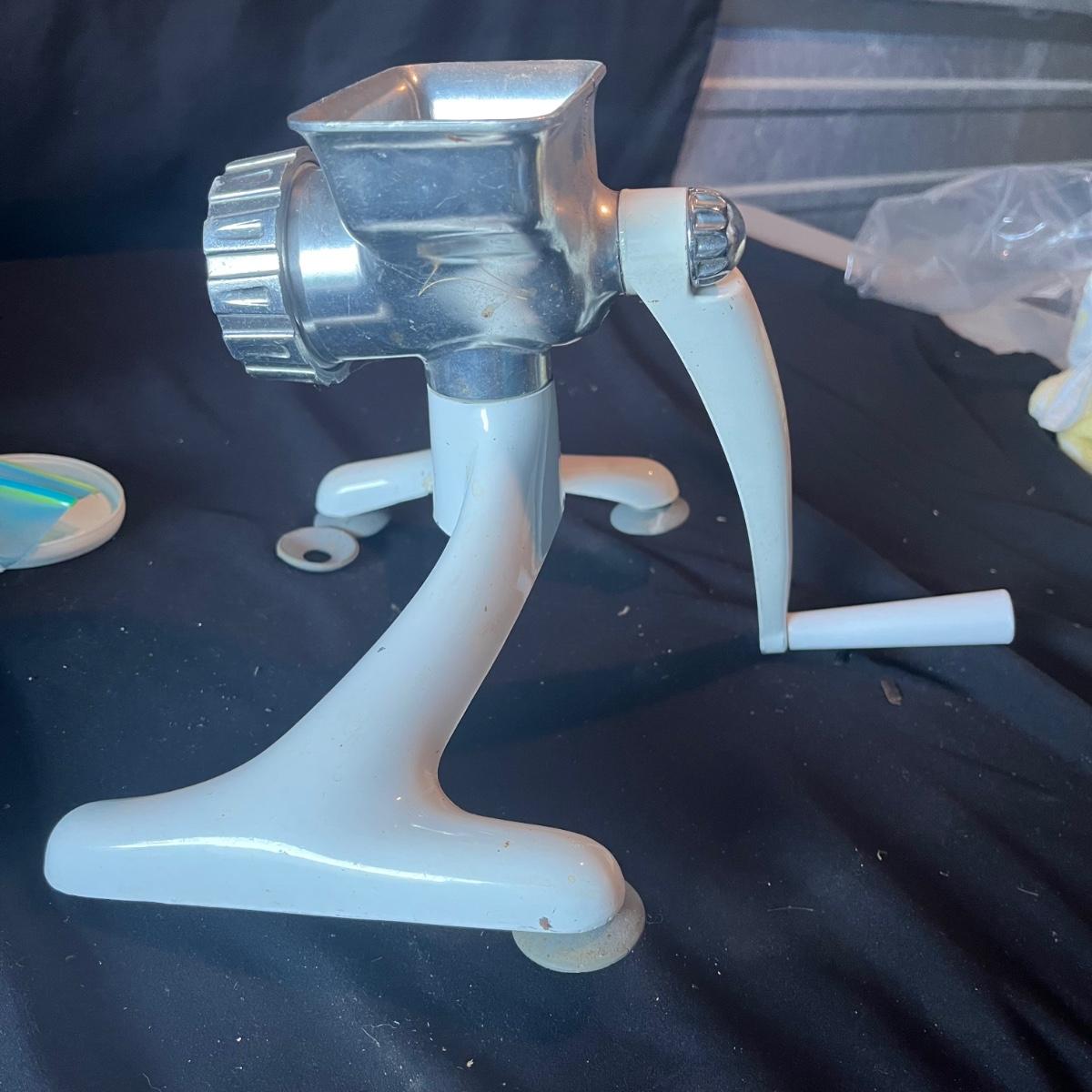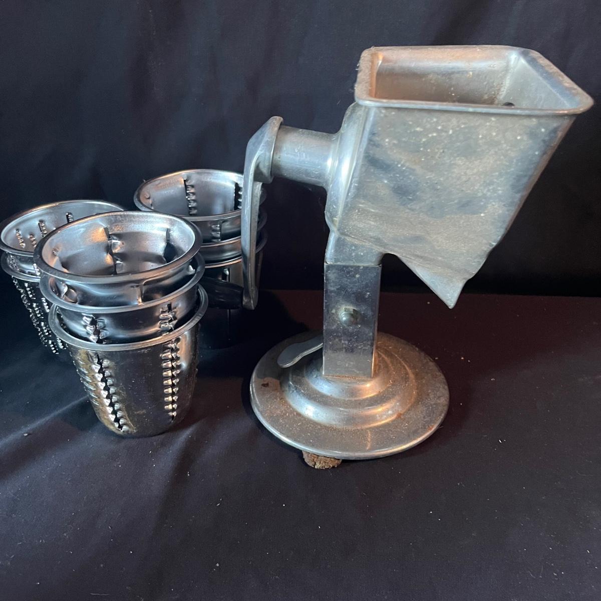 Lot includes a Kut Kleen Peeler, Best Made Grinder, unmarked grinder and two Kitchen Aid attachments. Kut Kleen measures 6” x 8” x 11”.
