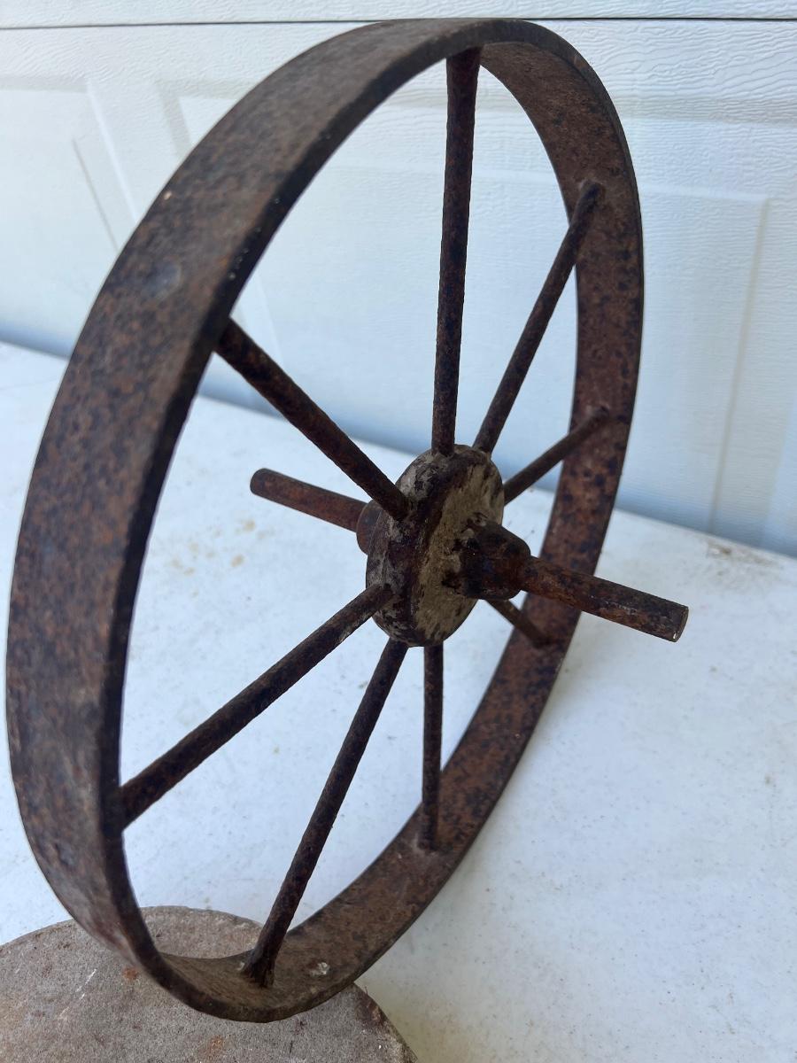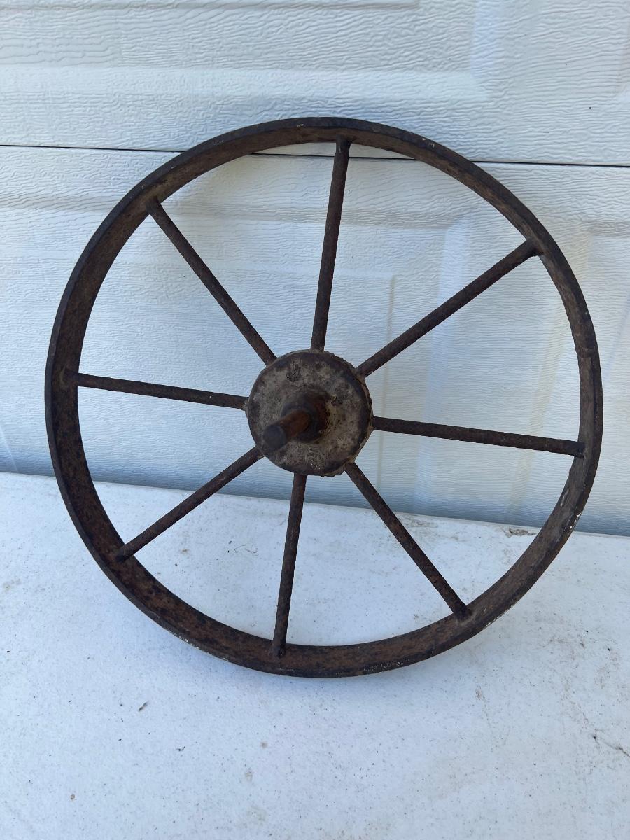 Wagon wheel measures approximately 16”. See pictures for item condition.