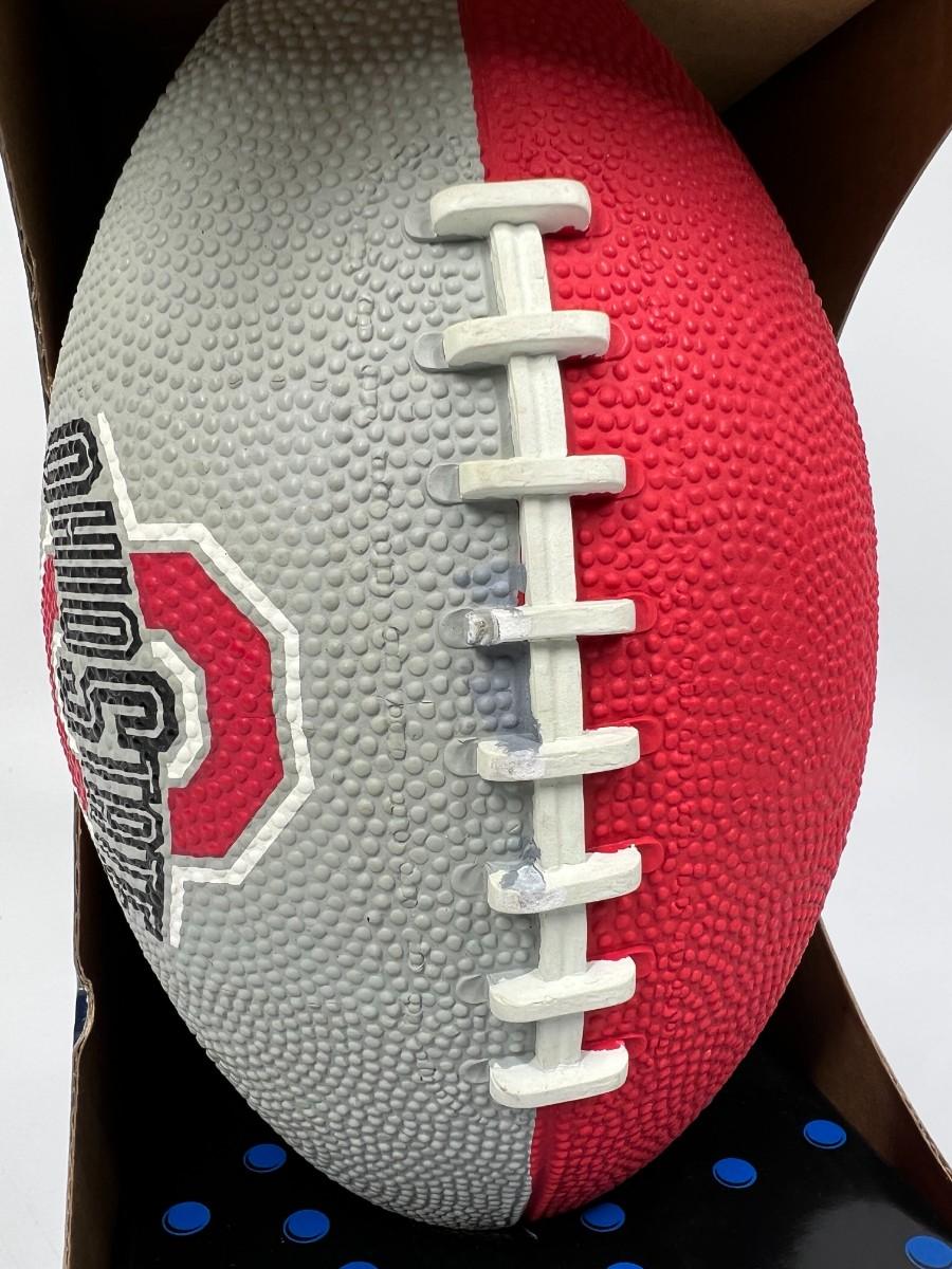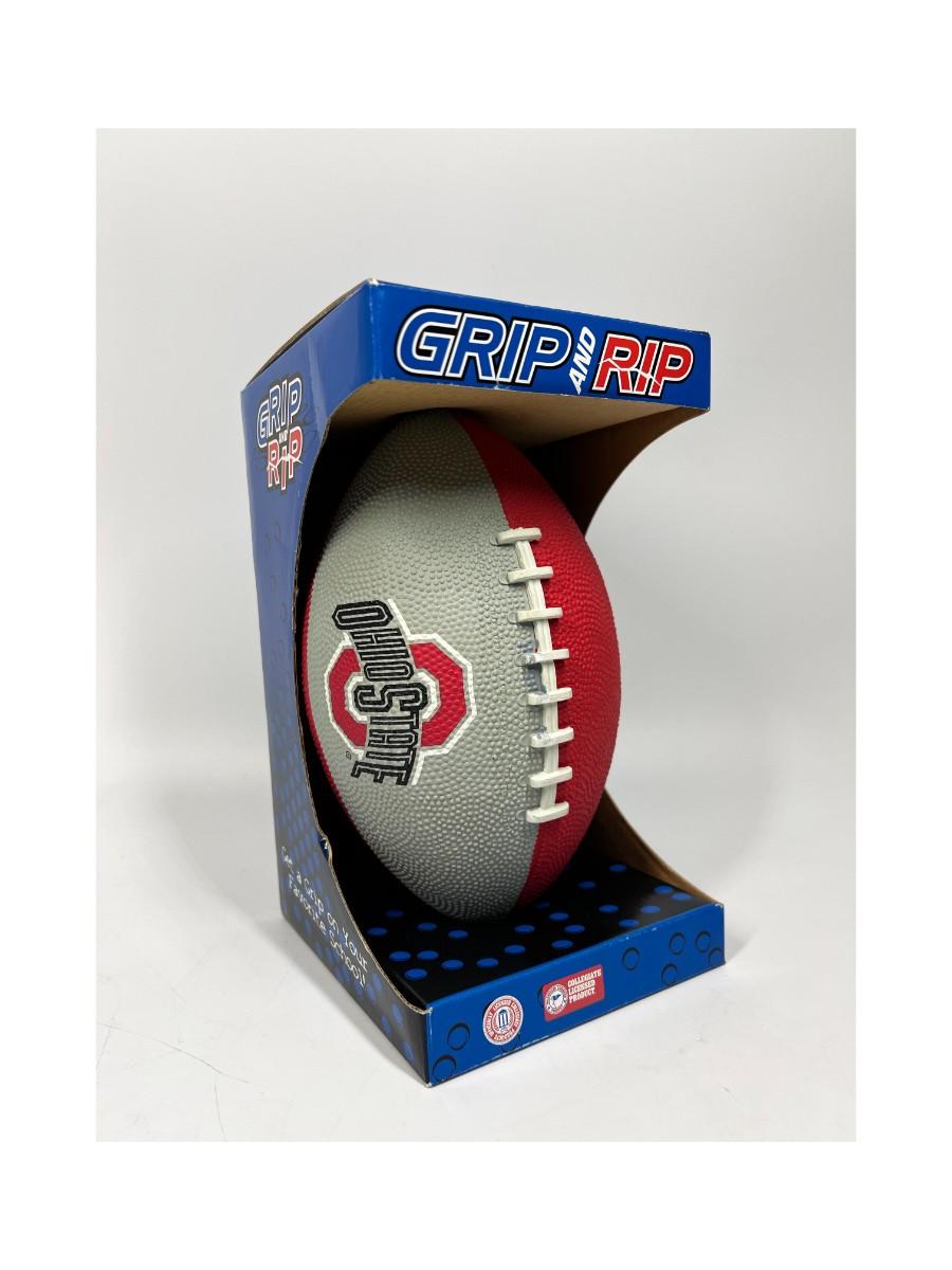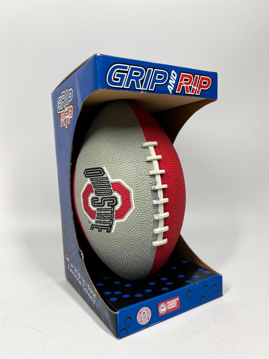 Grip and Rip Ohio State University Small Football Toy, there is some light wear on the ball, but there is no significant damage and is in good useable condition. Check pictures for more details and for sizing.